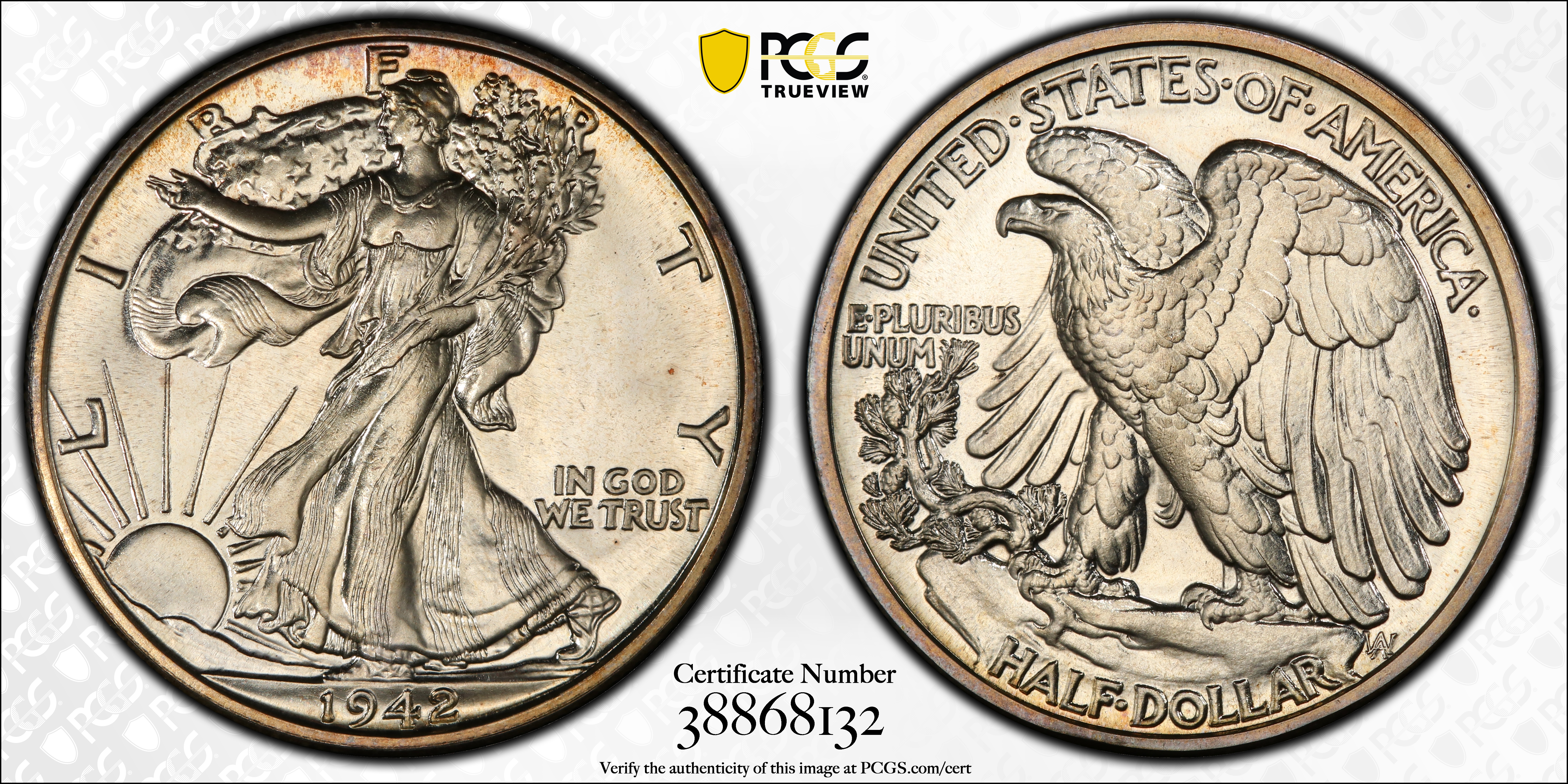 1942 50C PR67 Certification #38868132, PCGS #6642