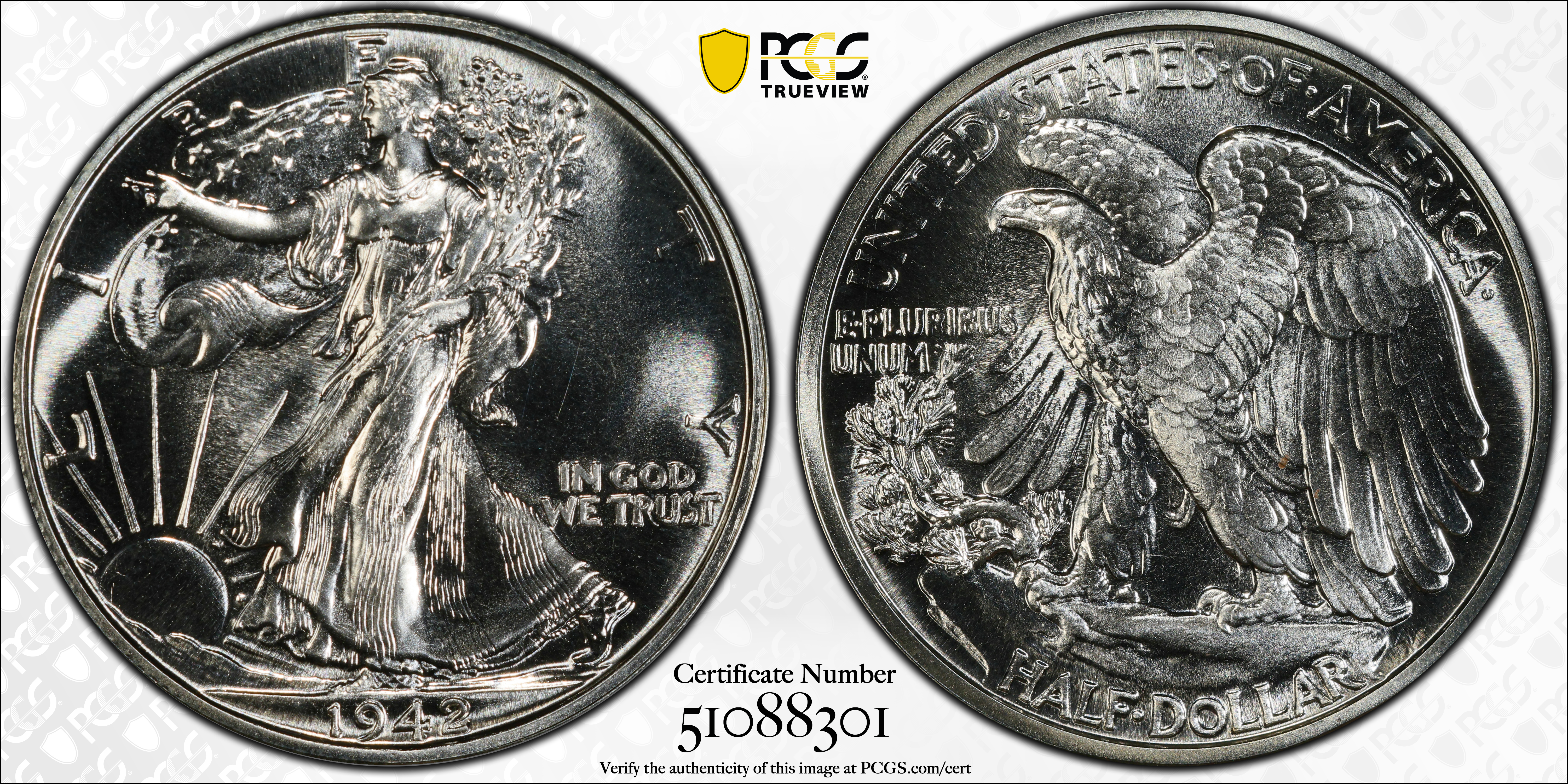 1942 50C PR67+ Certification #51088301, PCGS #6642