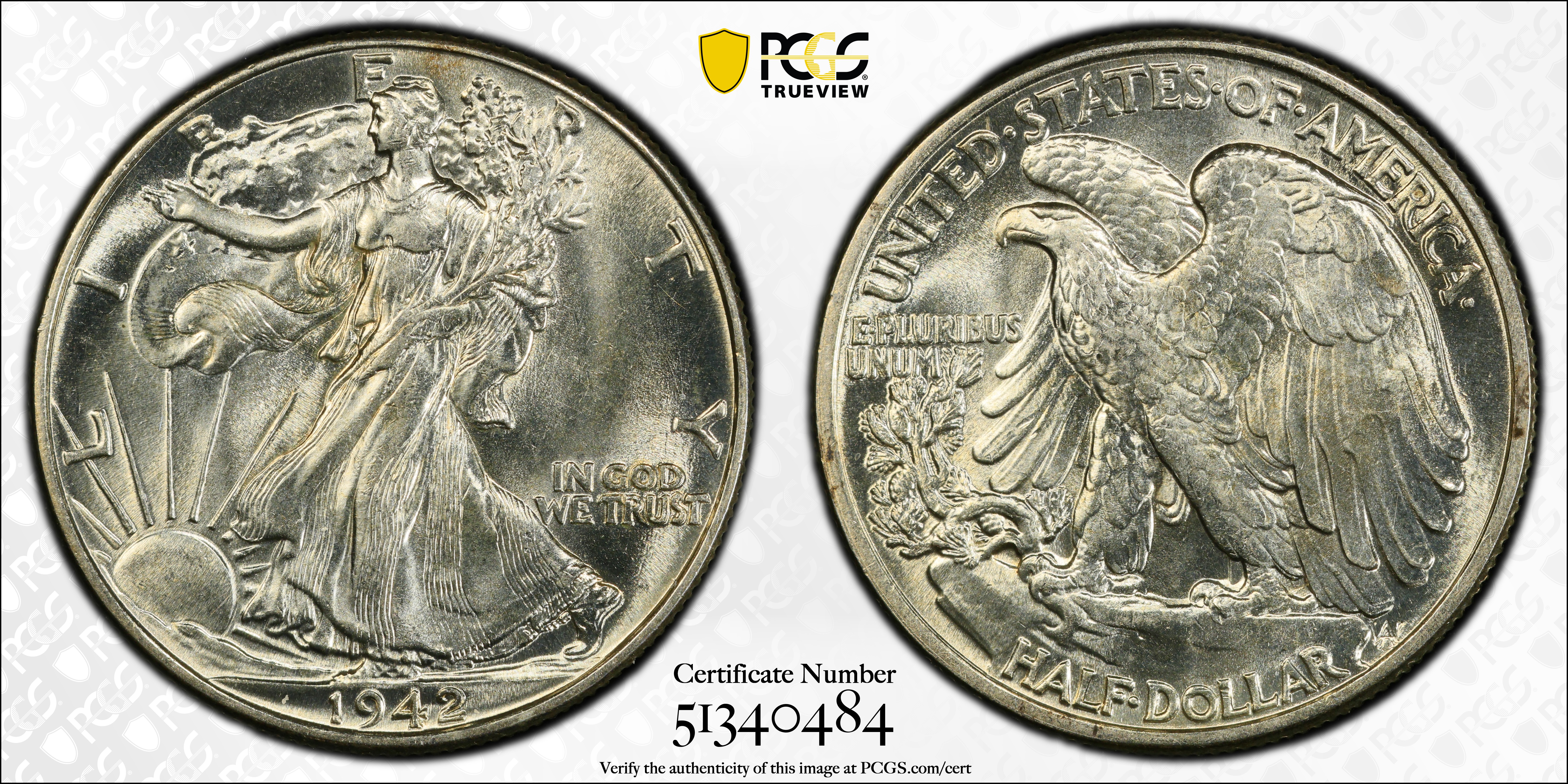 1942 50C MS64 Certification #51340484, PCGS #6614