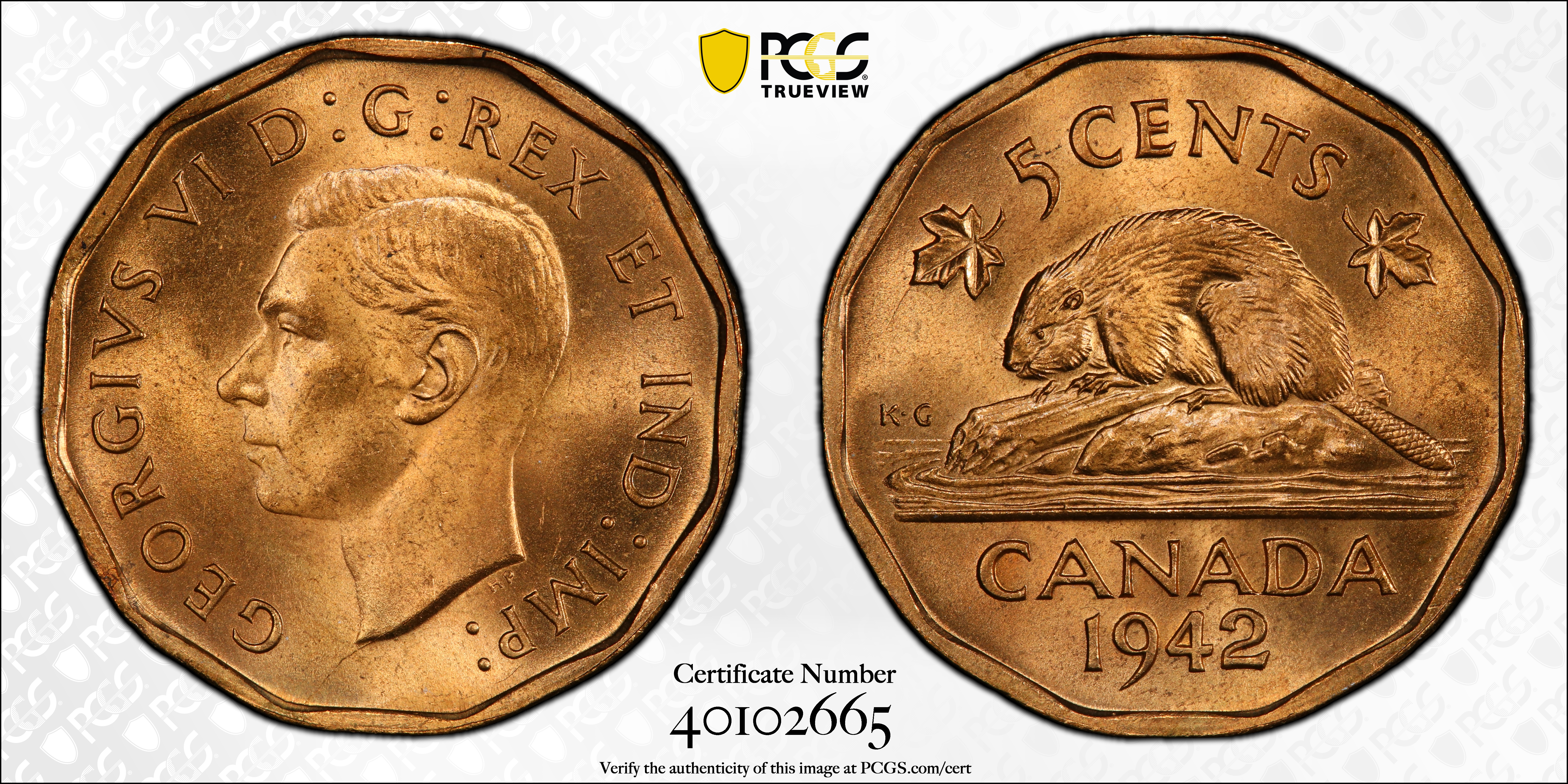 1942 5C Tombac MS64+ Certification #40102665, PCGS #31120