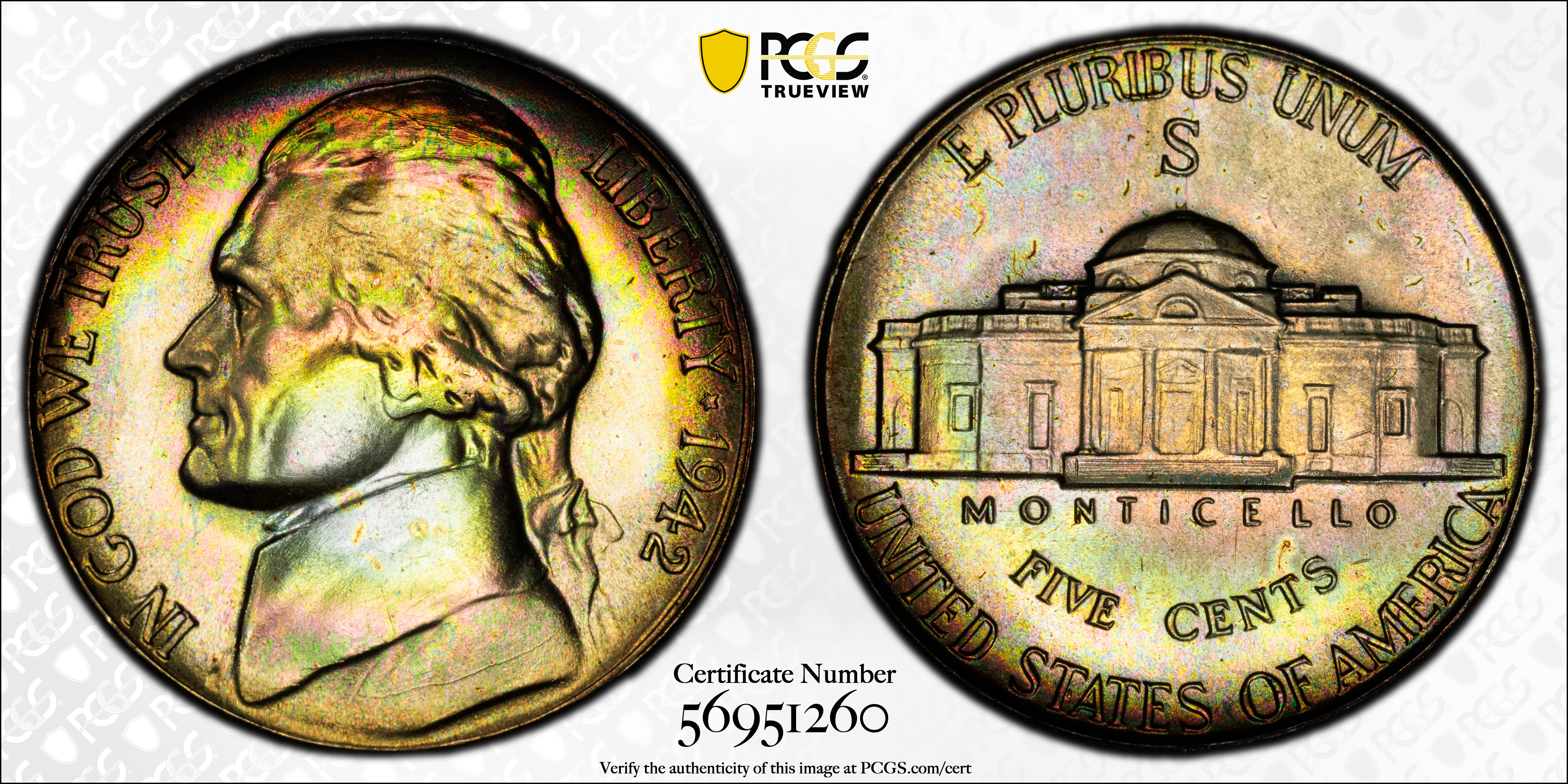 1942-S 5C MS68+ Certification #56951260, PCGS #4017