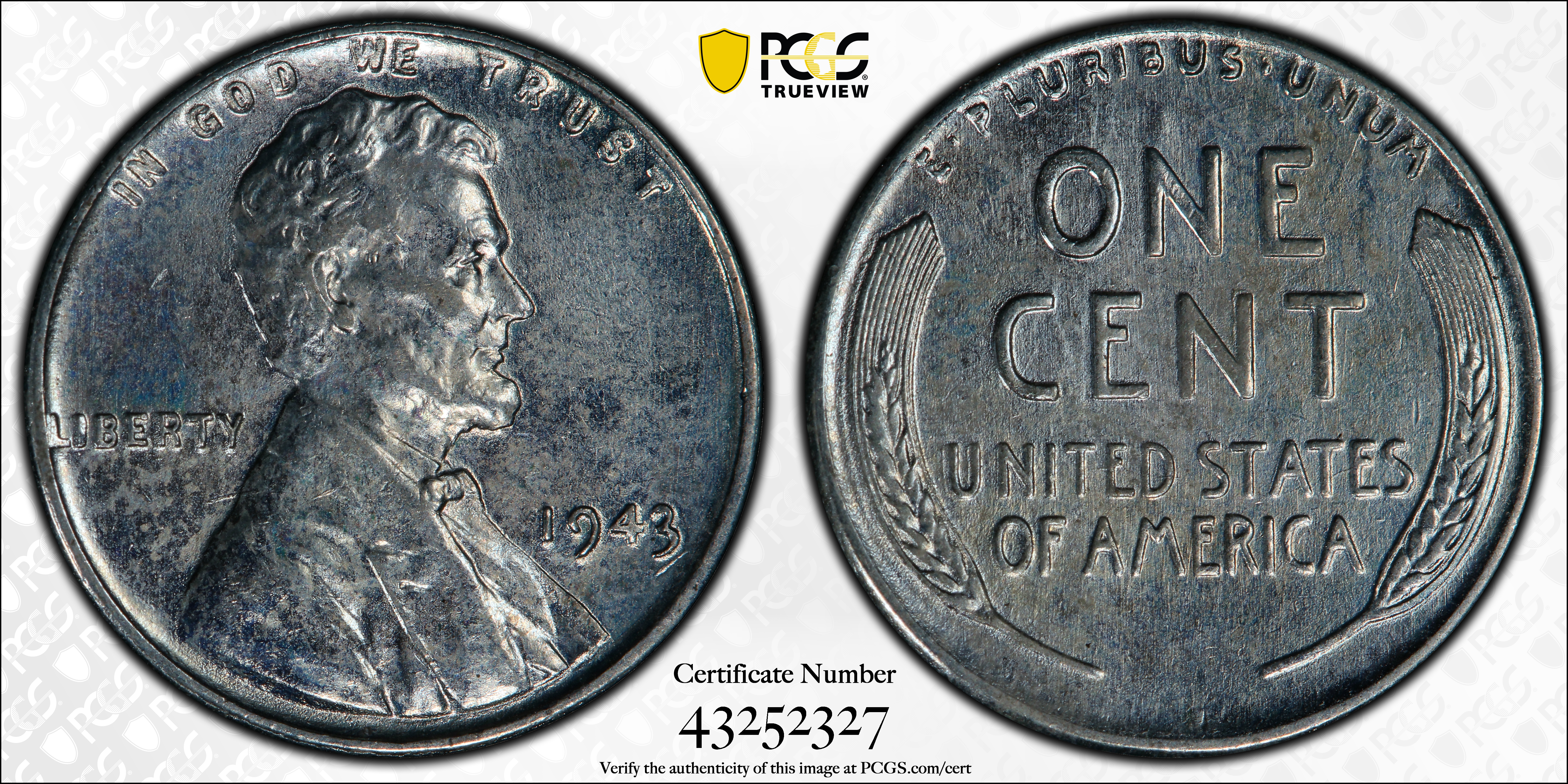 1943 1C N1 Certification #43252327, PCGS #2711