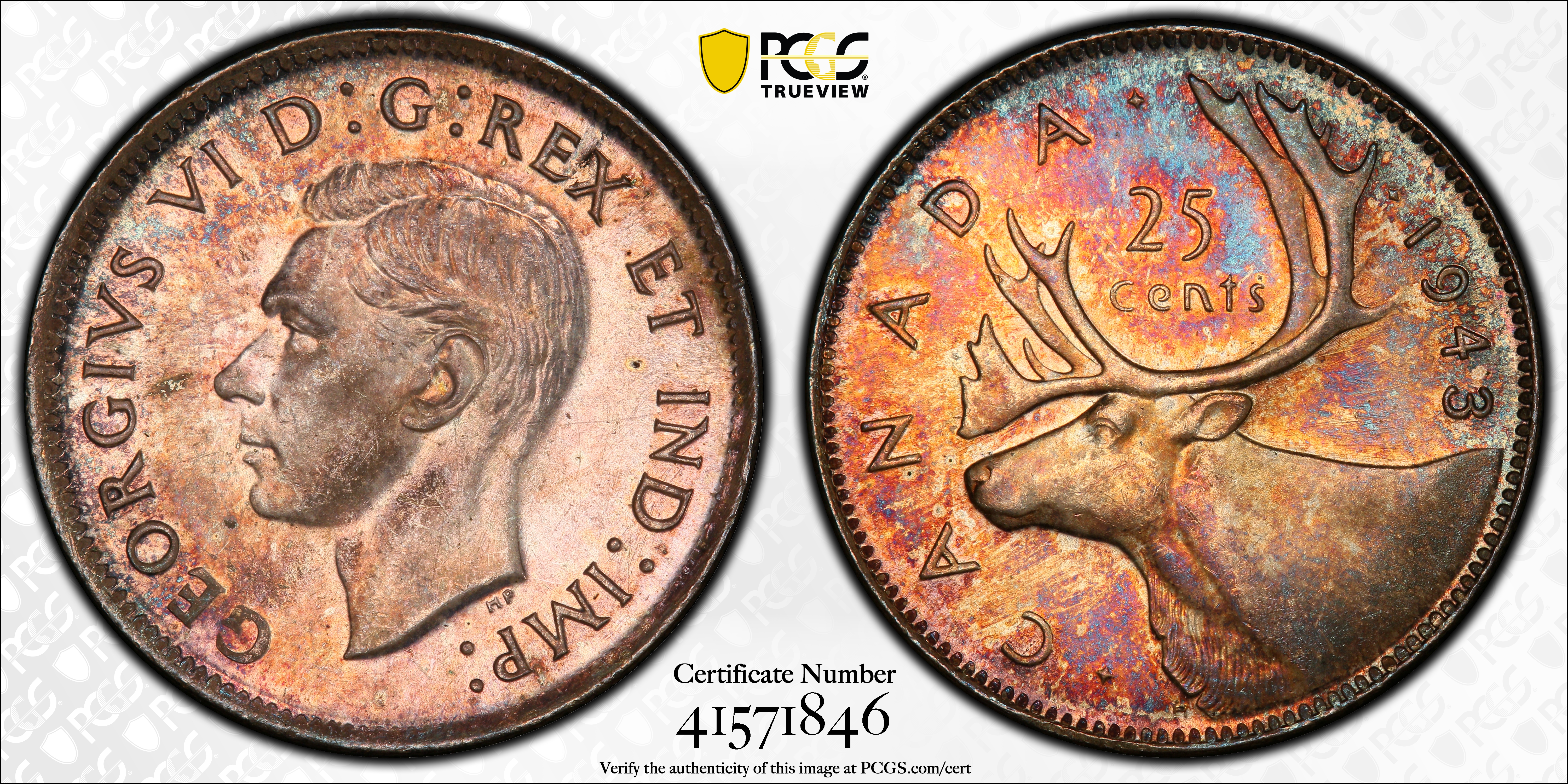 1943 25C MS65 Certification #41571846, PCGS #31856
