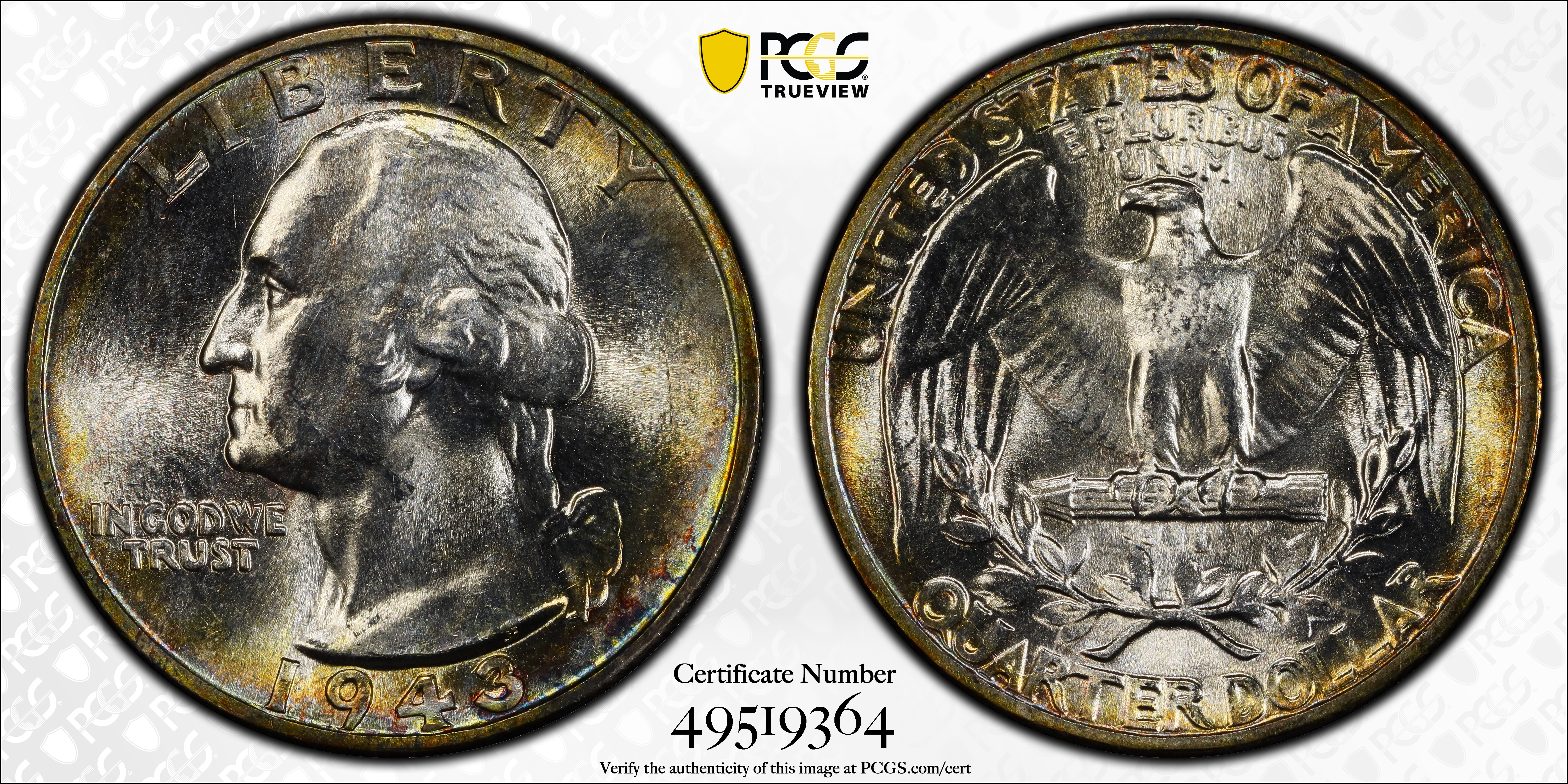 1943 25C MS65 Certification #49519364, PCGS #5820