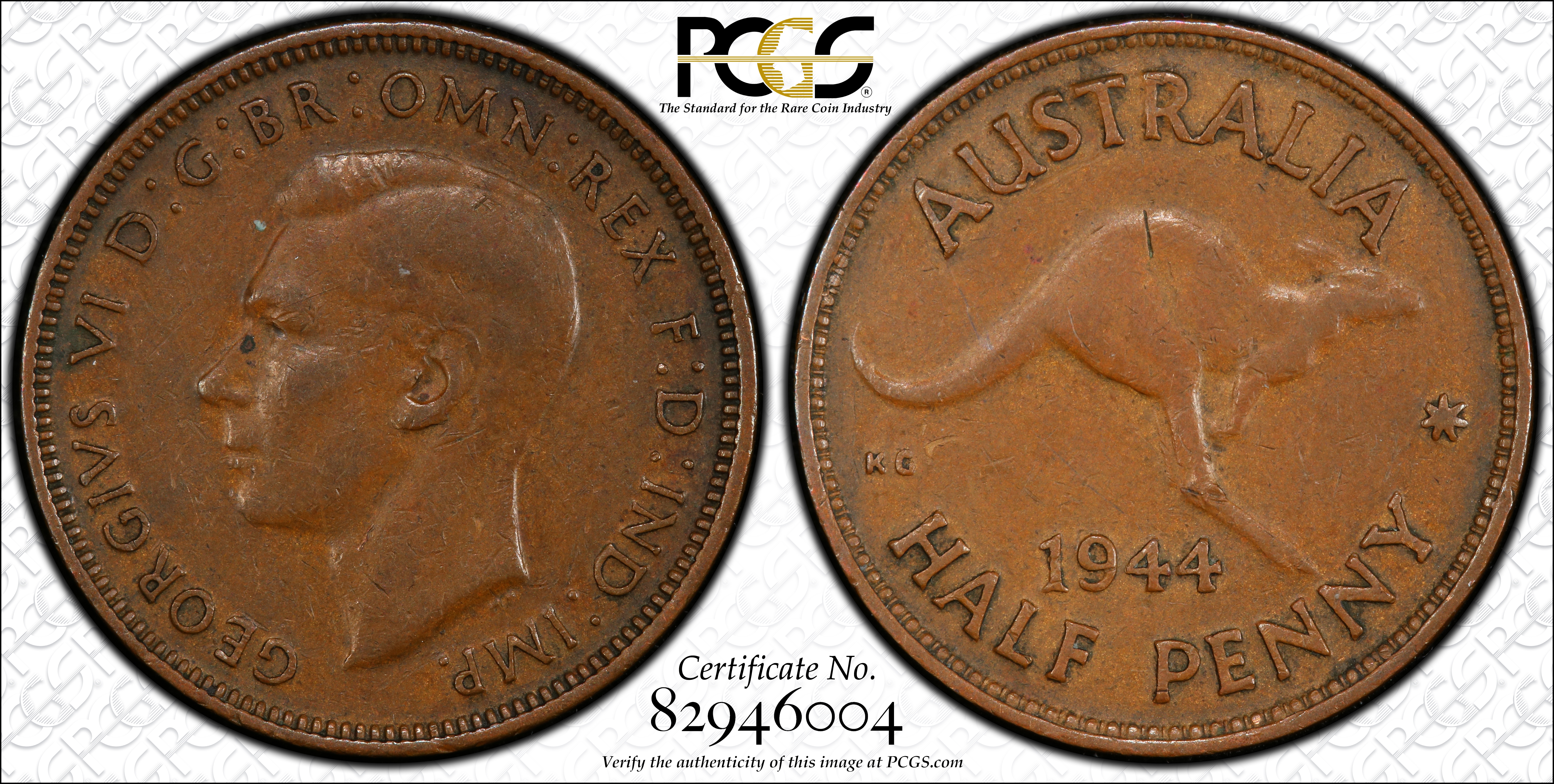 1944 1/2D, BN XF40BN Certification #82946004, PCGS #143571