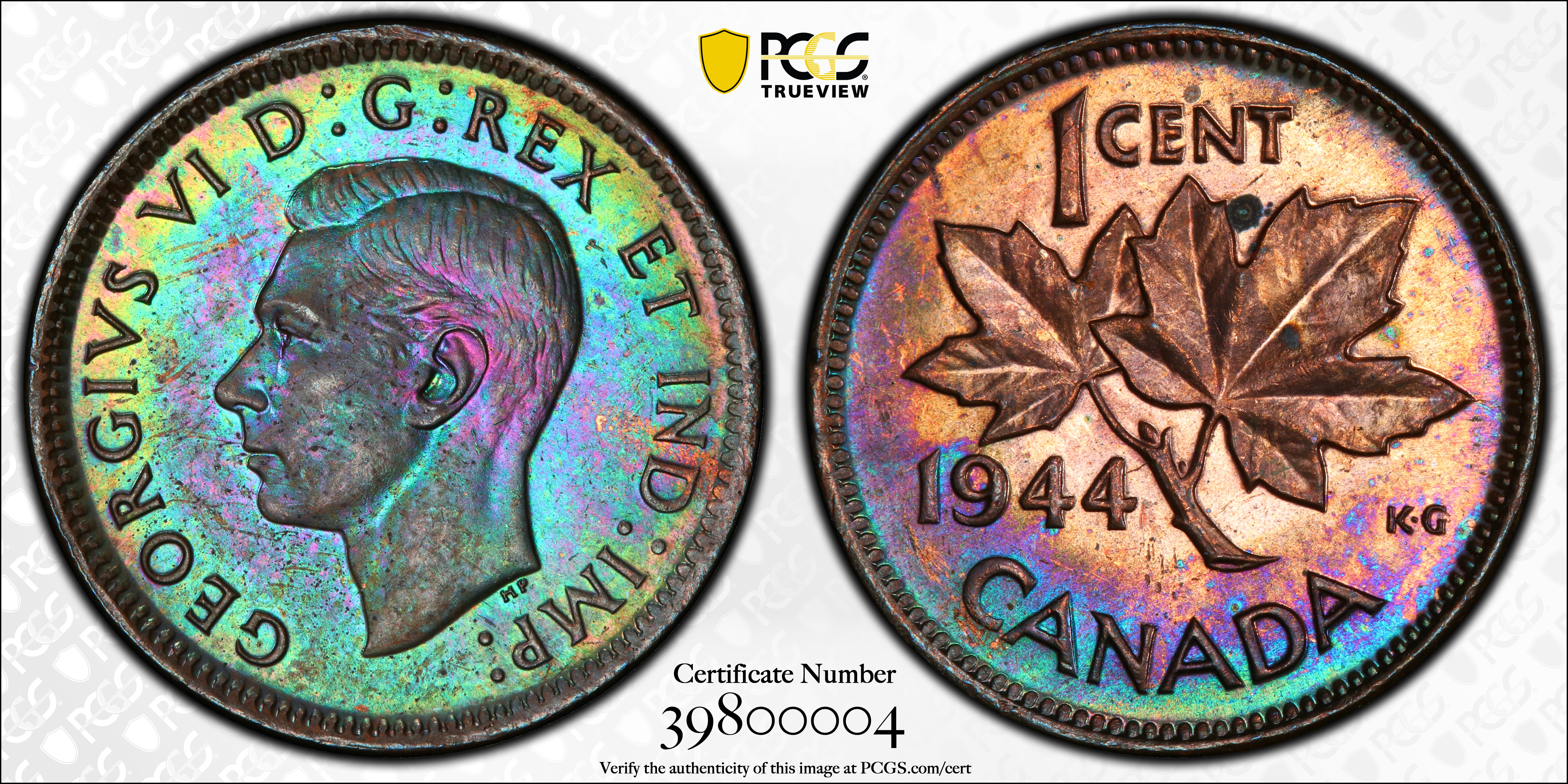1944 1C, BN N1BN Certification #39800004, PCGS #30363