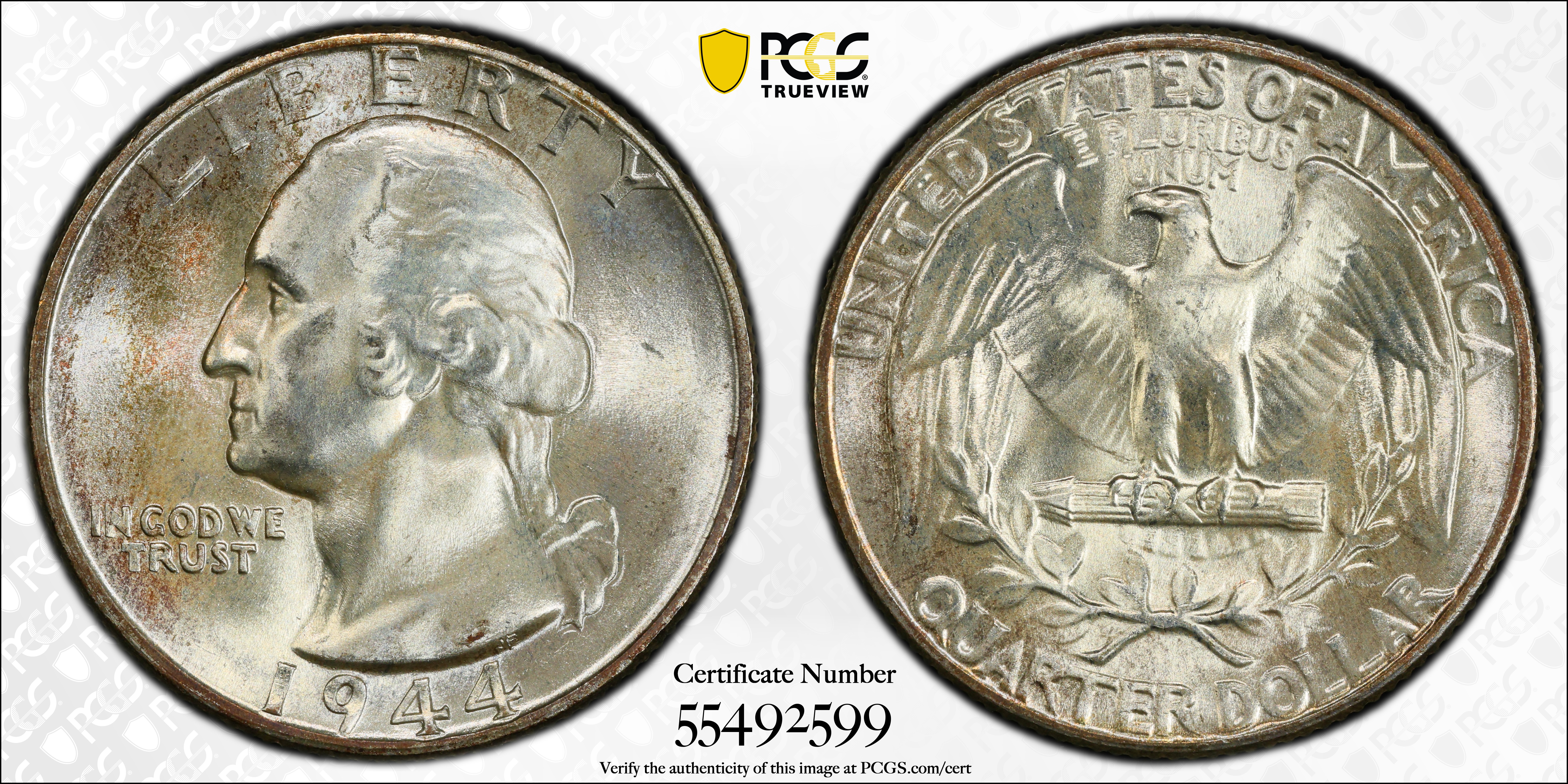 1944 25C MS67+ Certification #55492599, PCGS #5824