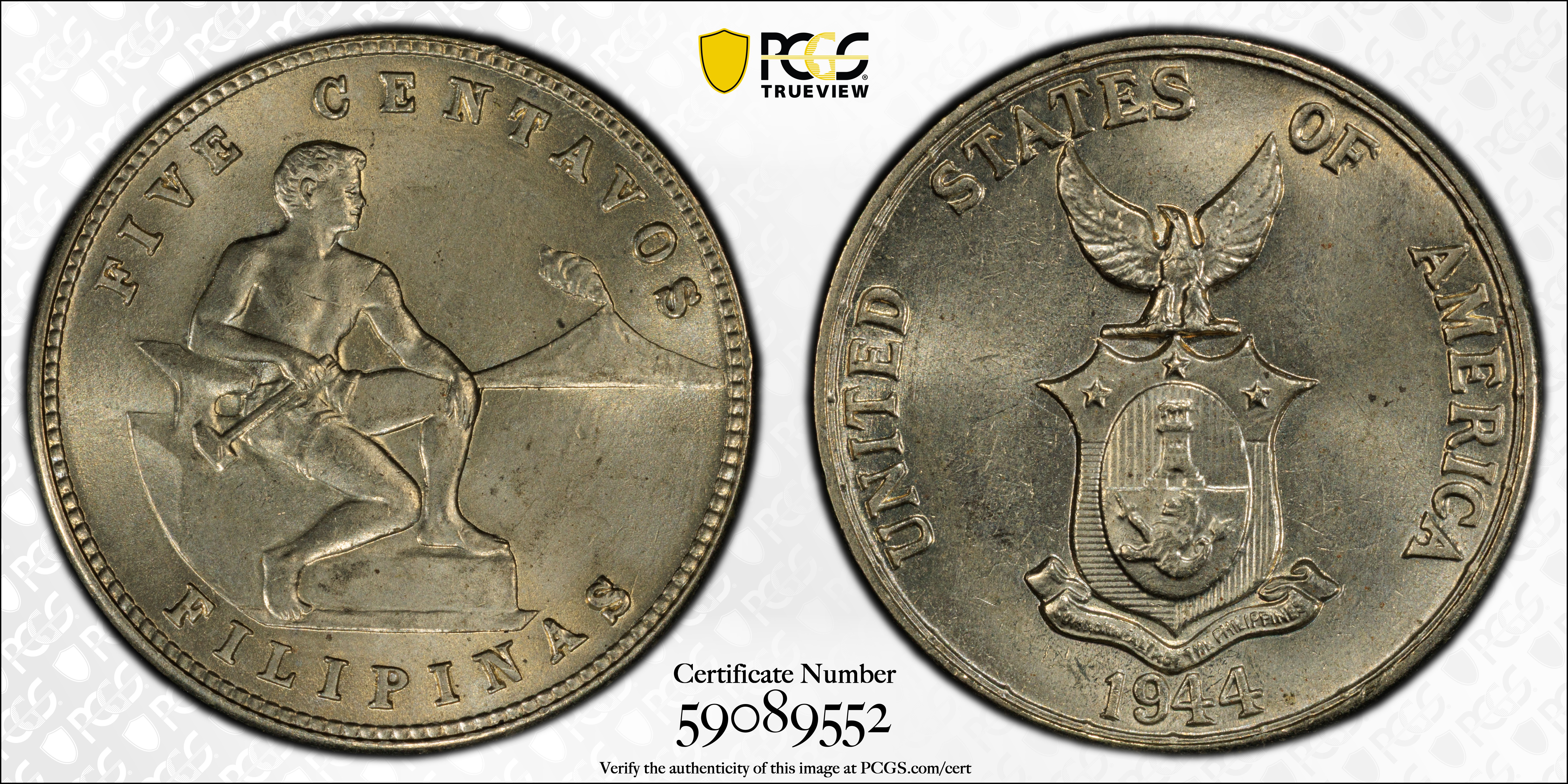 1944 5C MS64 Certification #59089552, PCGS #90231