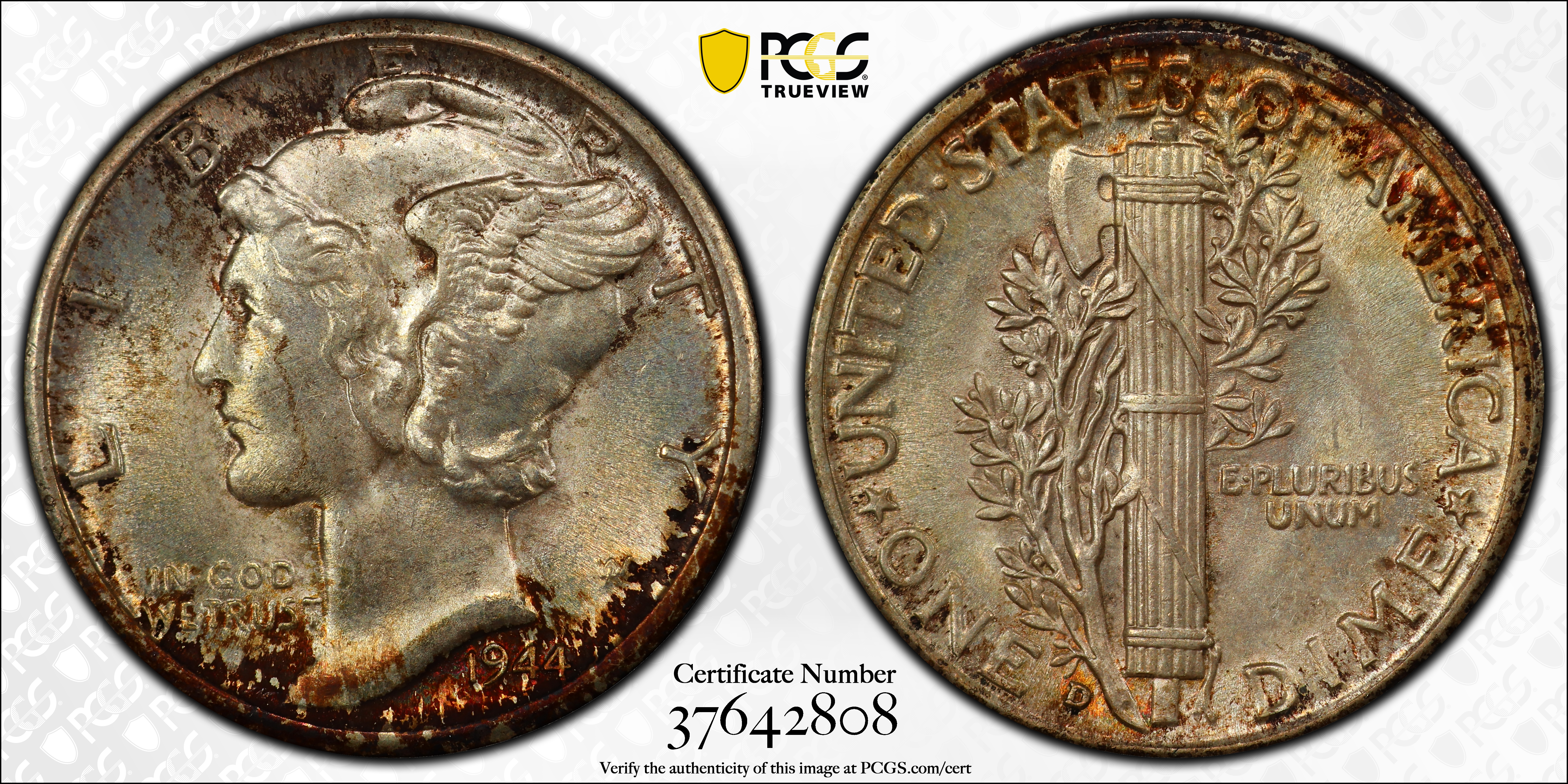 1944-D 10C MS65 Certification #37642808, PCGS #5052