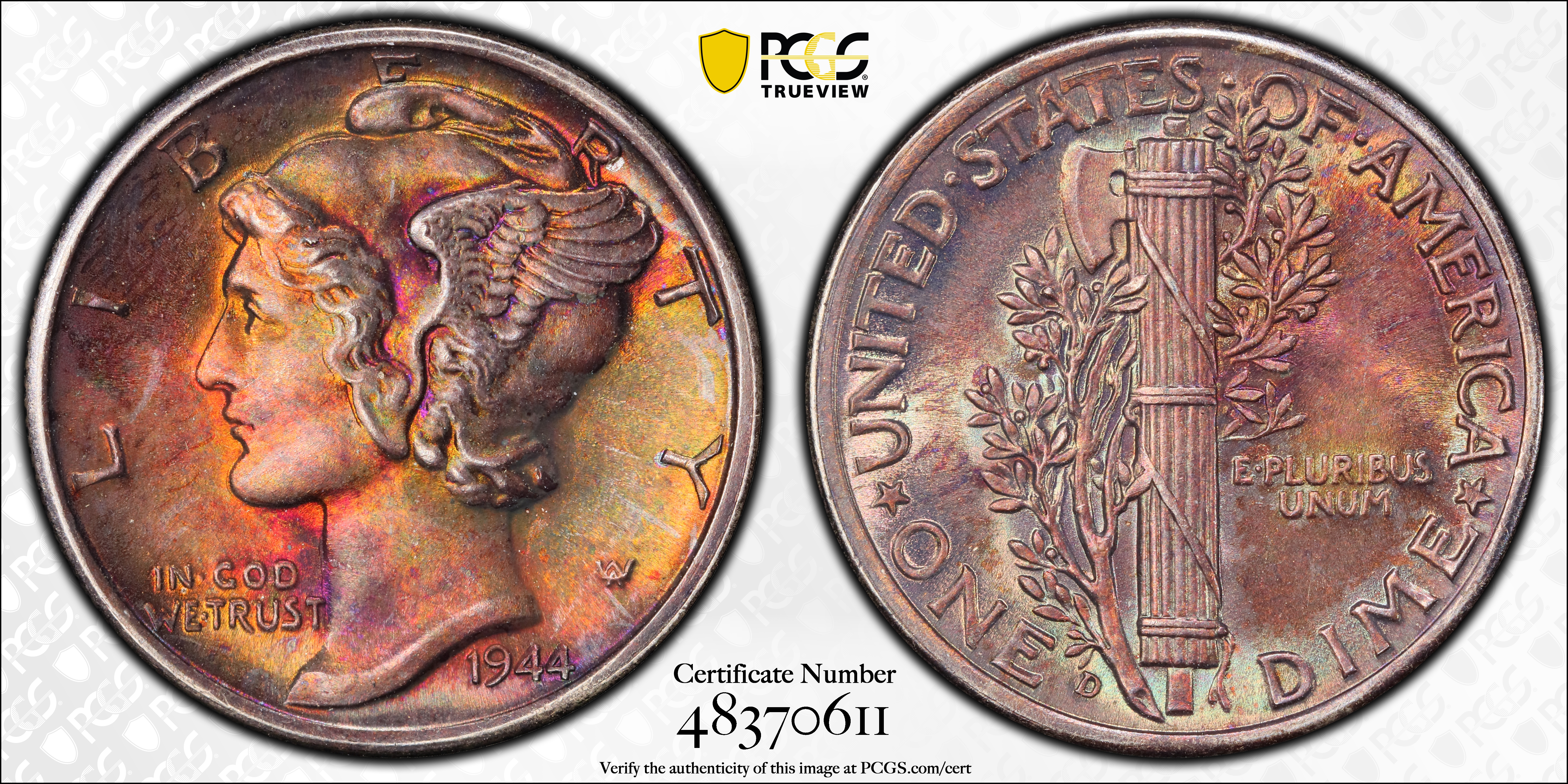 1944-D 10C, FB MS66FB Certification #48370611, PCGS #5053