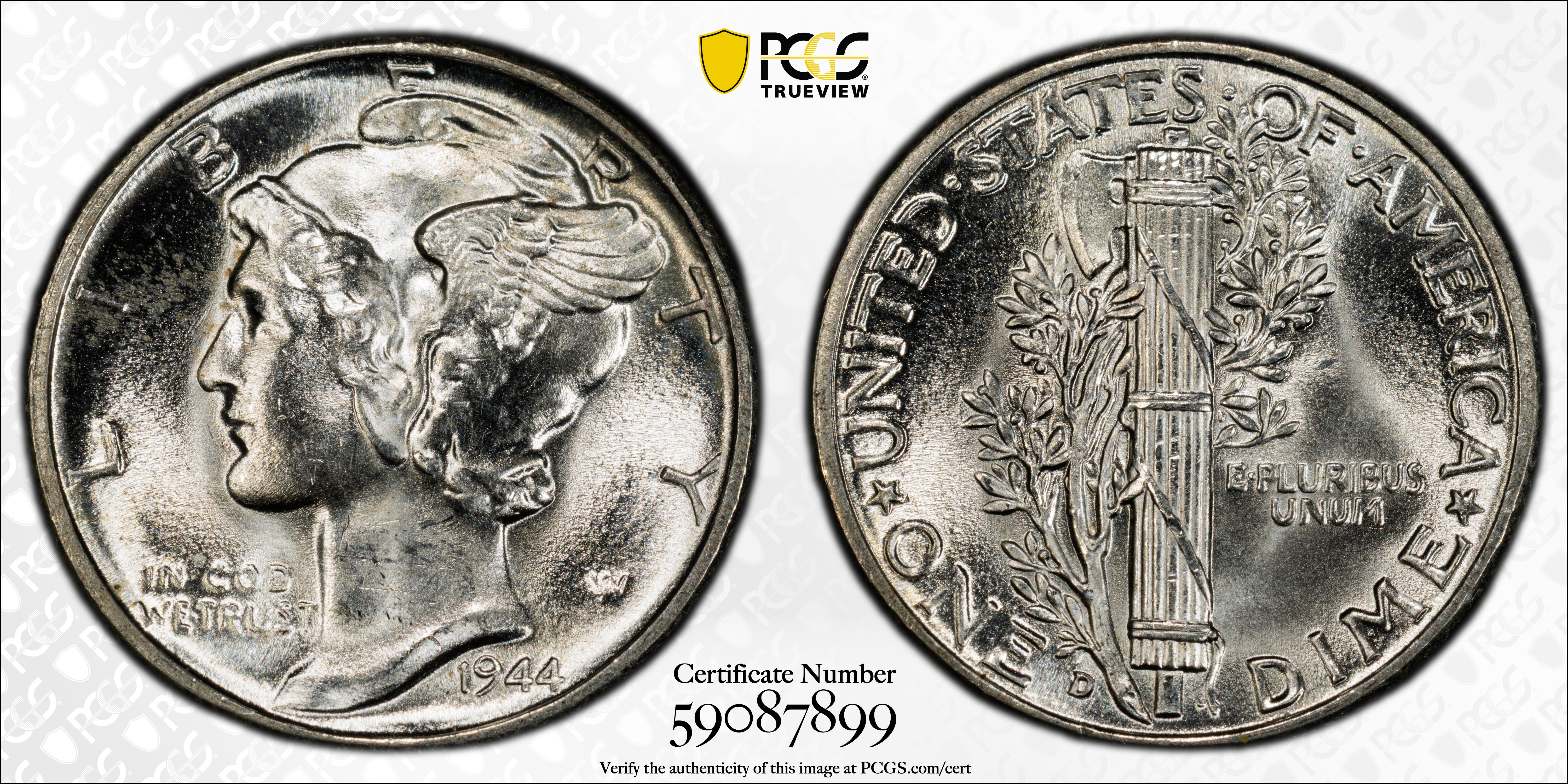 1944-D 10C, FB MS65FB Certification #59087899, PCGS #5053