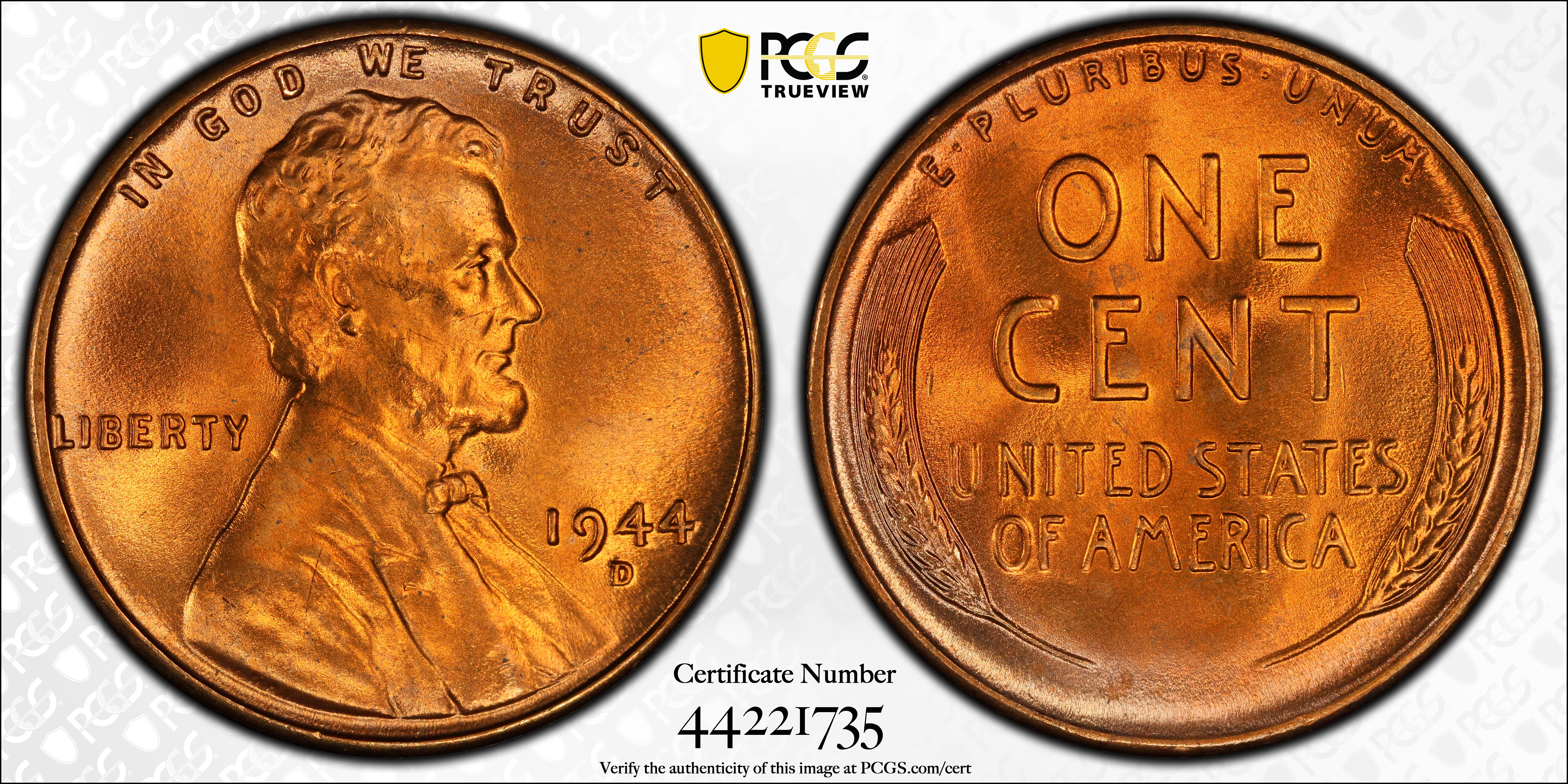 1944-D 1C, RD MS67+ RD Certification #44221735, PCGS #2725