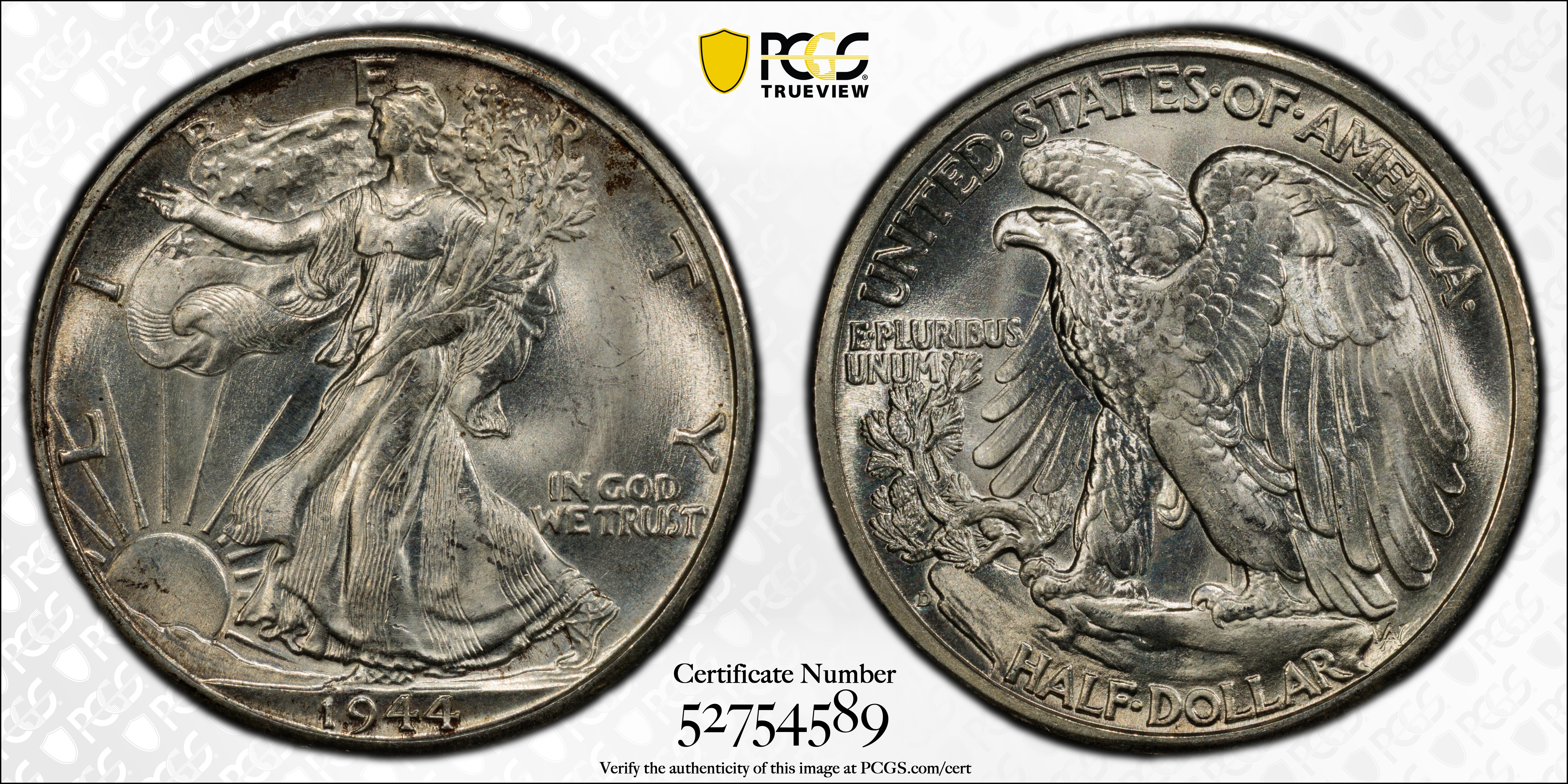 1944-D 50C MS66+ Certification #52754589, PCGS #6622