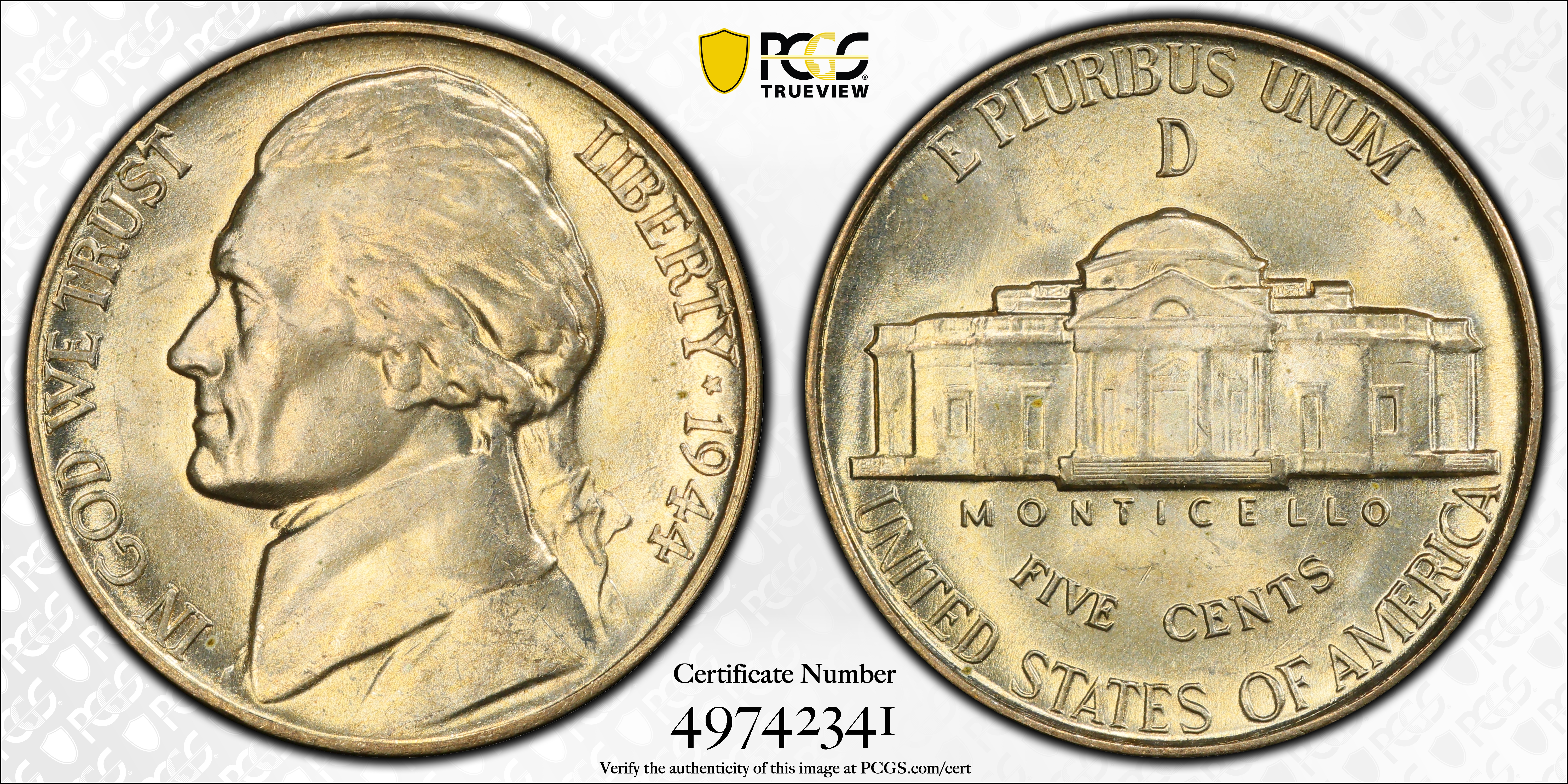 1944-D 5C, FS MS65FS Certification #49742341, PCGS #84023