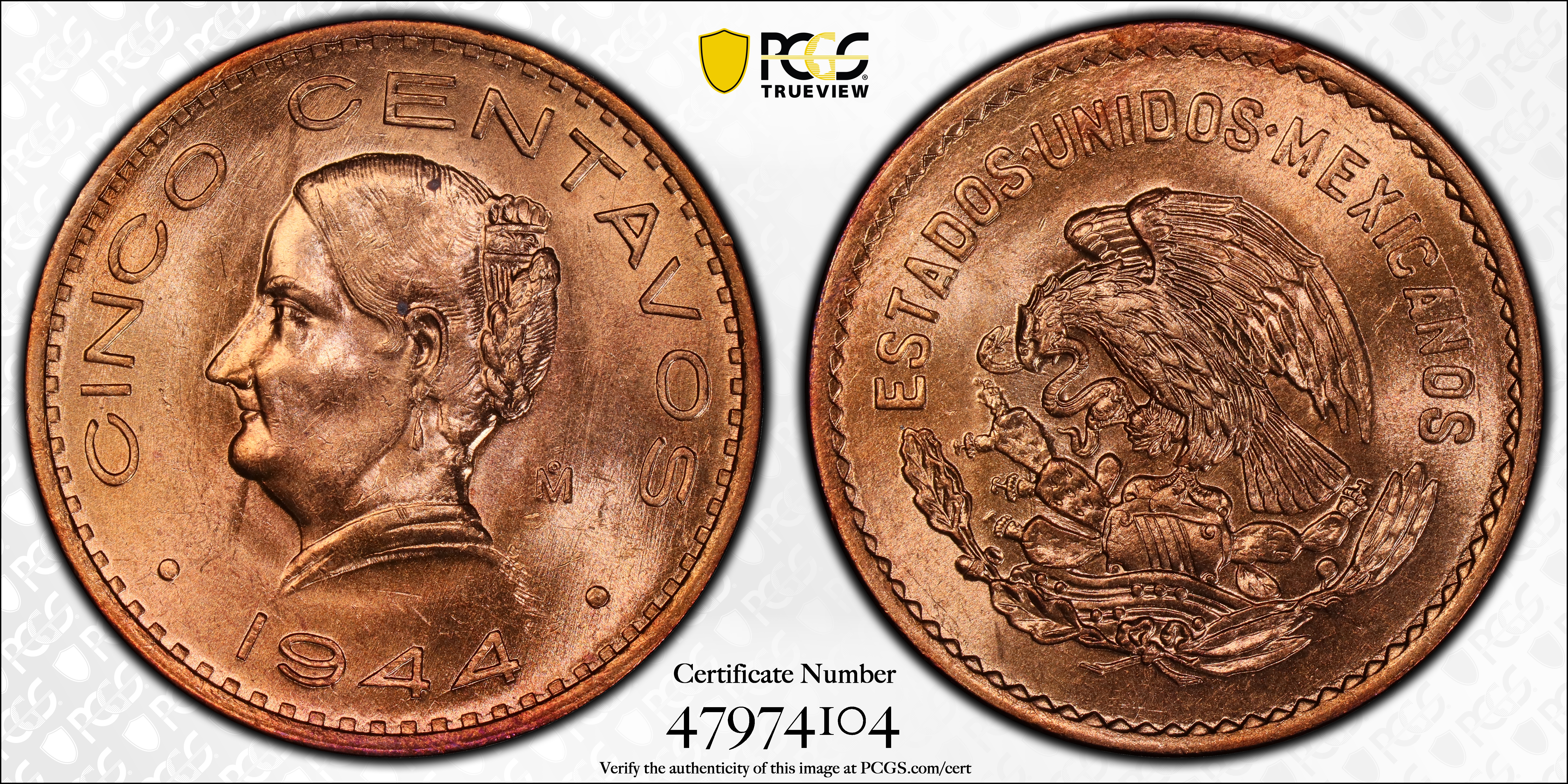 1944-Mo 5C, RD MS64RD Certification #47974104, PCGS #390009
