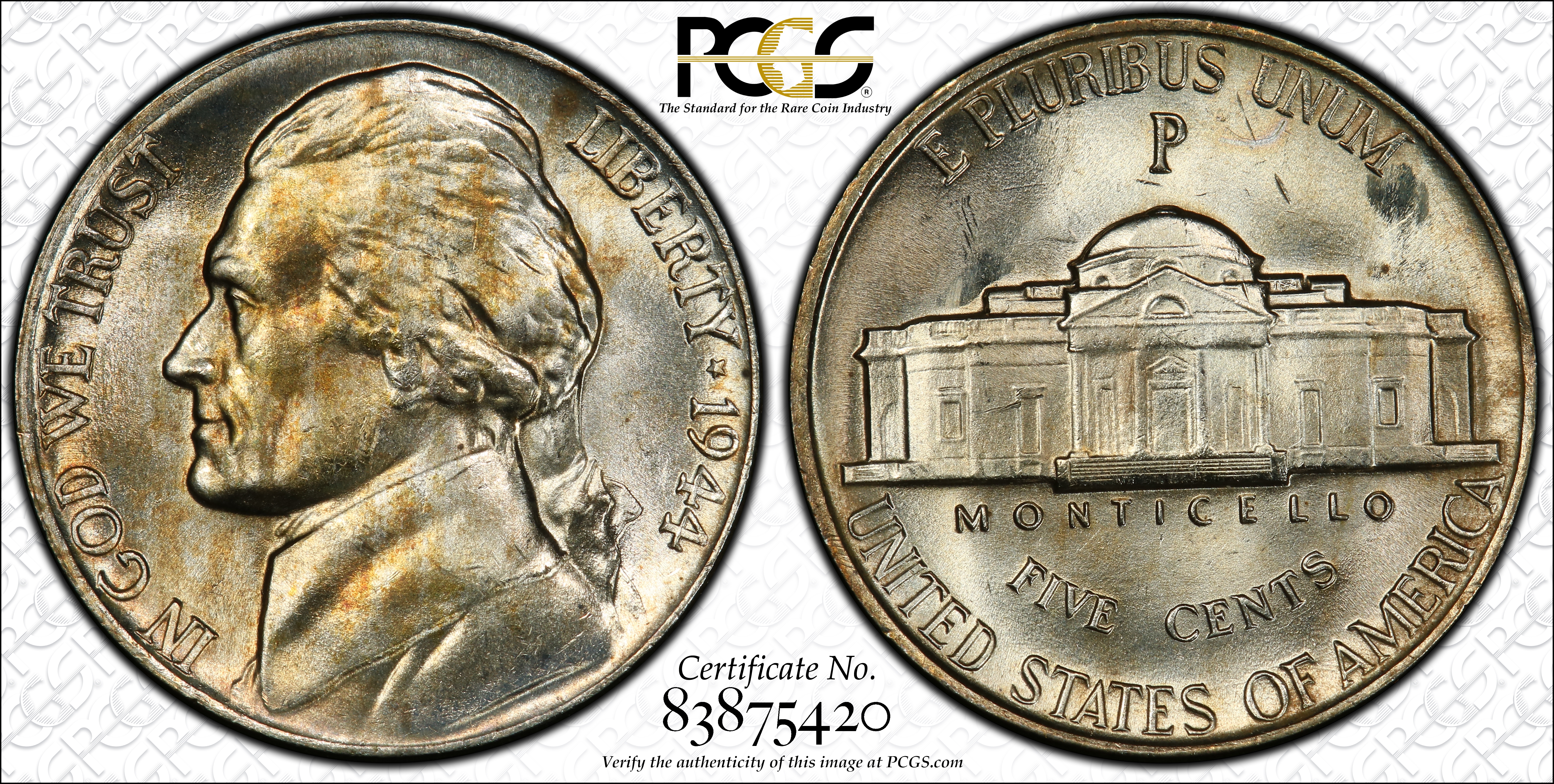 1944-P 5C MS65 Certification #83875420, PCGS #4022