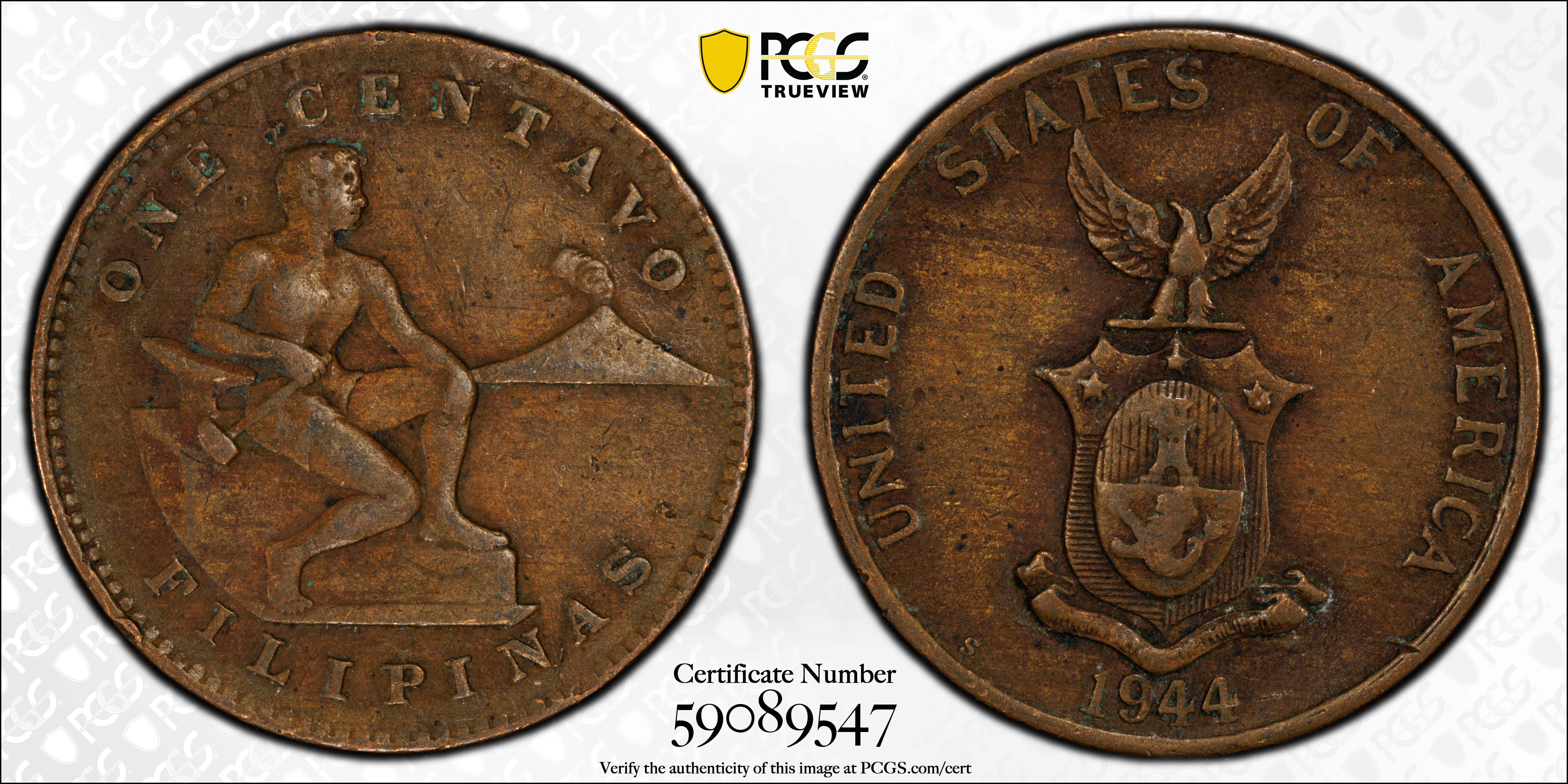 1944-S 1C KM-179, BN XF45BN Certification #59089547, PCGS #90183