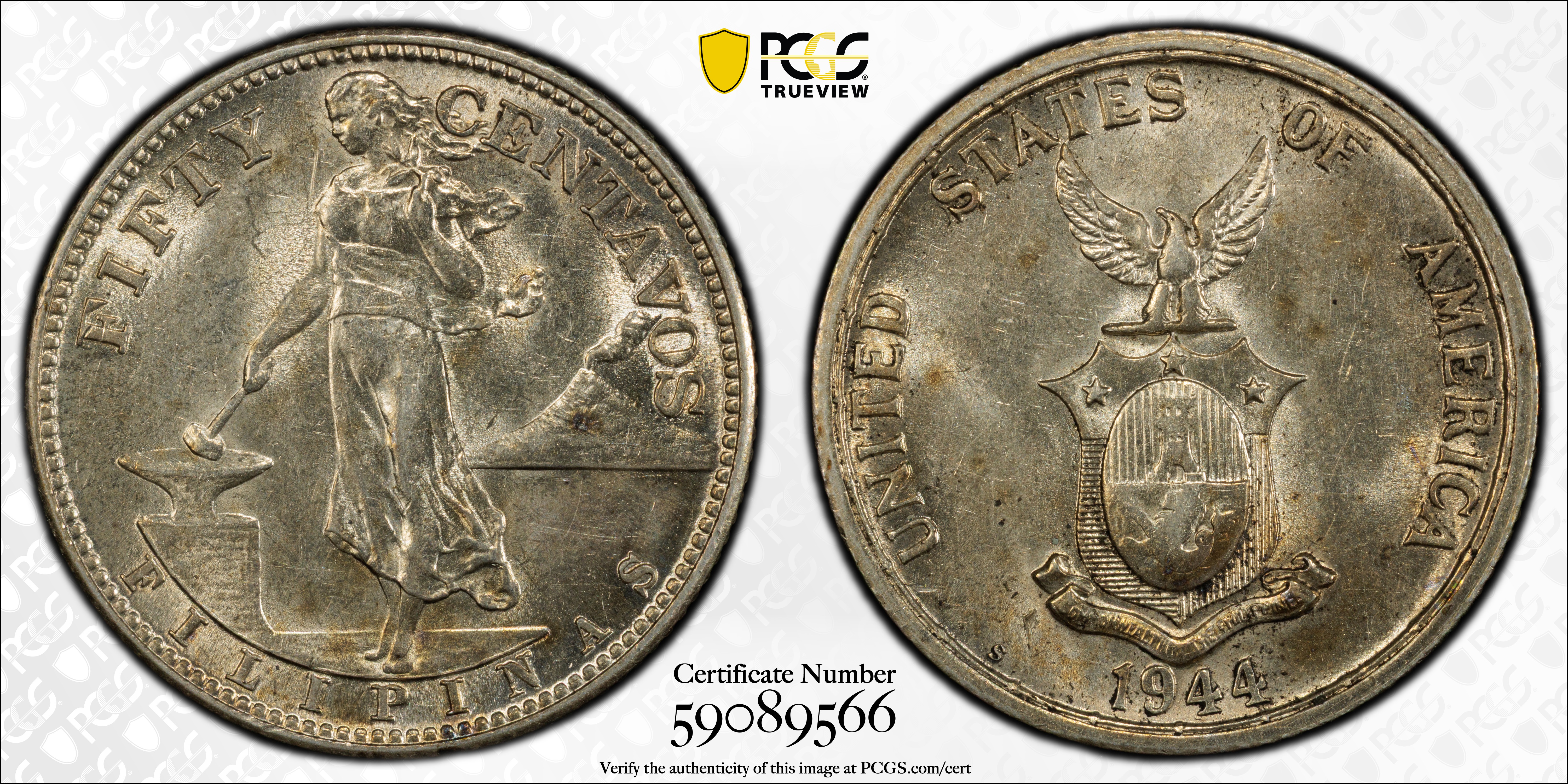 1944-S 50C KM-183 Ag MS62 Certification #59089566, PCGS #90375