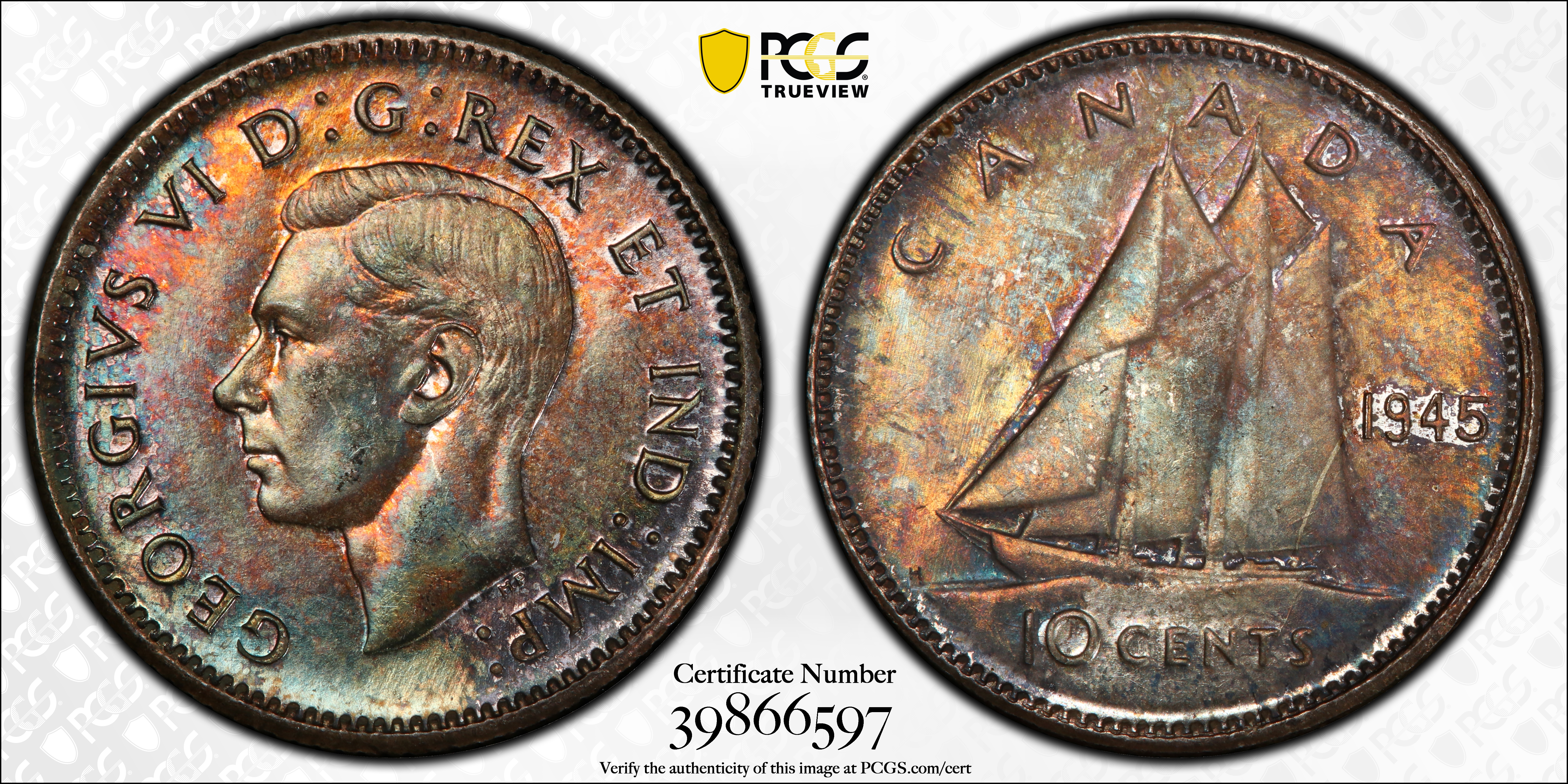 1945 10C MS64 Certification #39866597, PCGS #31497