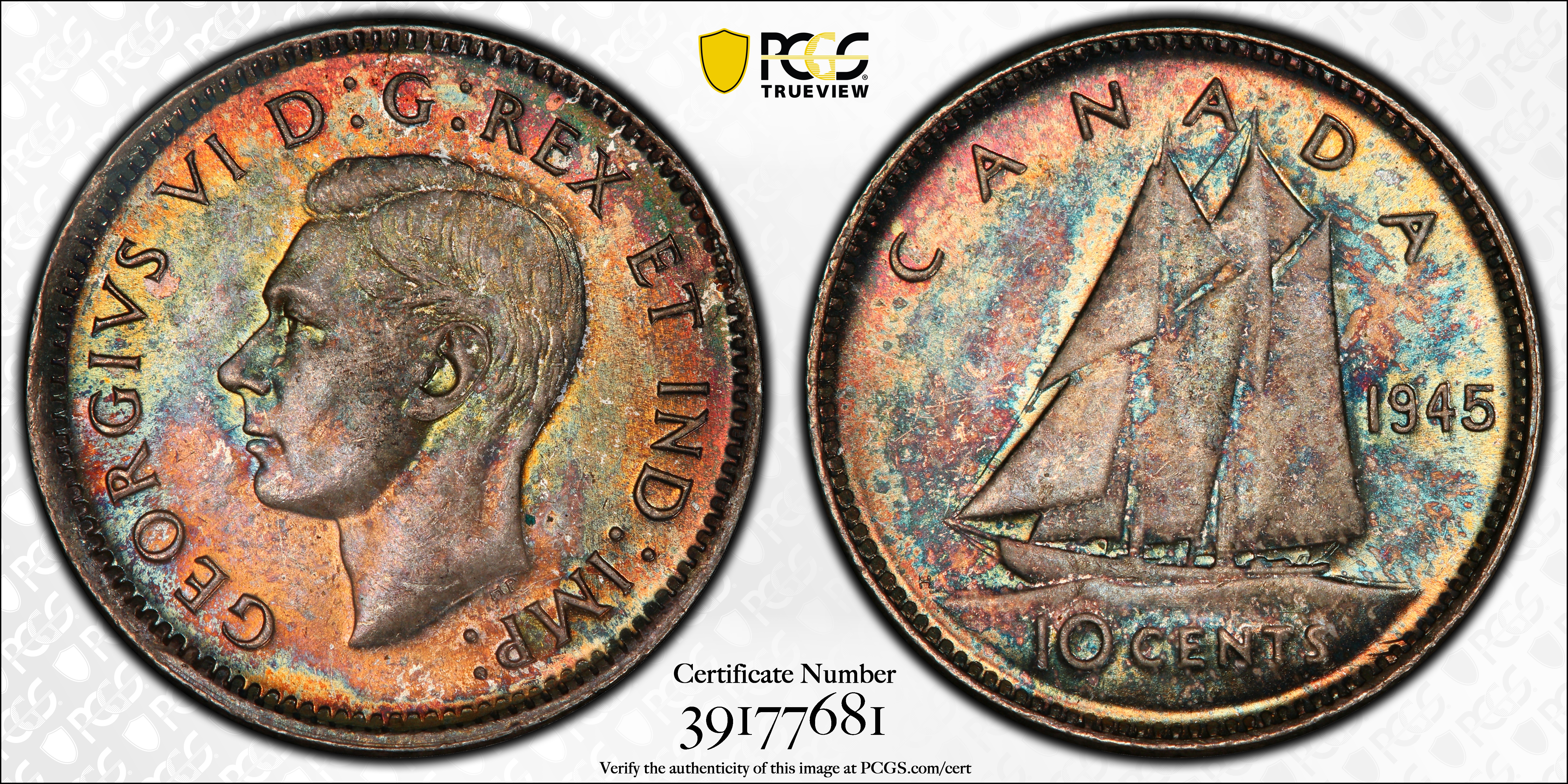 1945 10C MS65 Certification #39177681, PCGS #31497