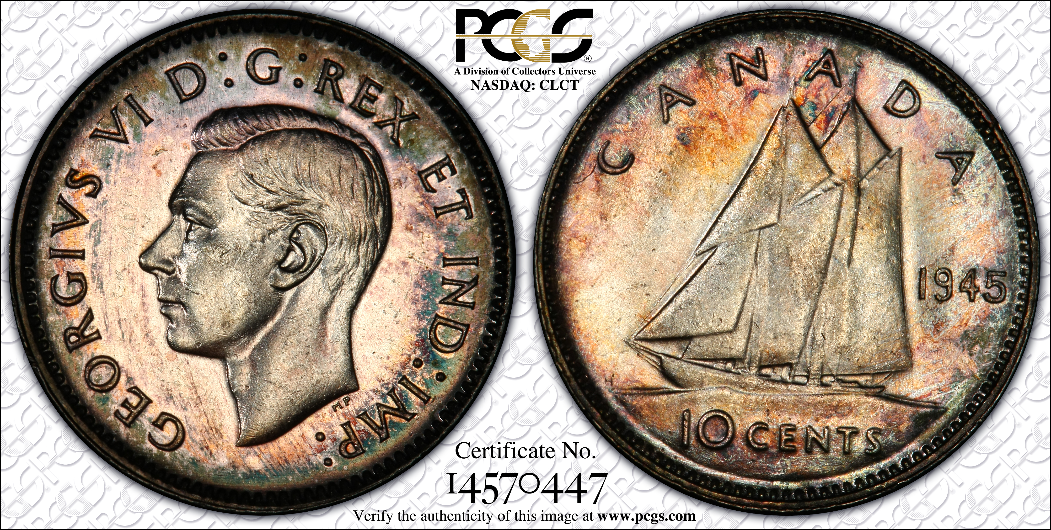 1945 10C MS62 Certification #14570447, PCGS #31497