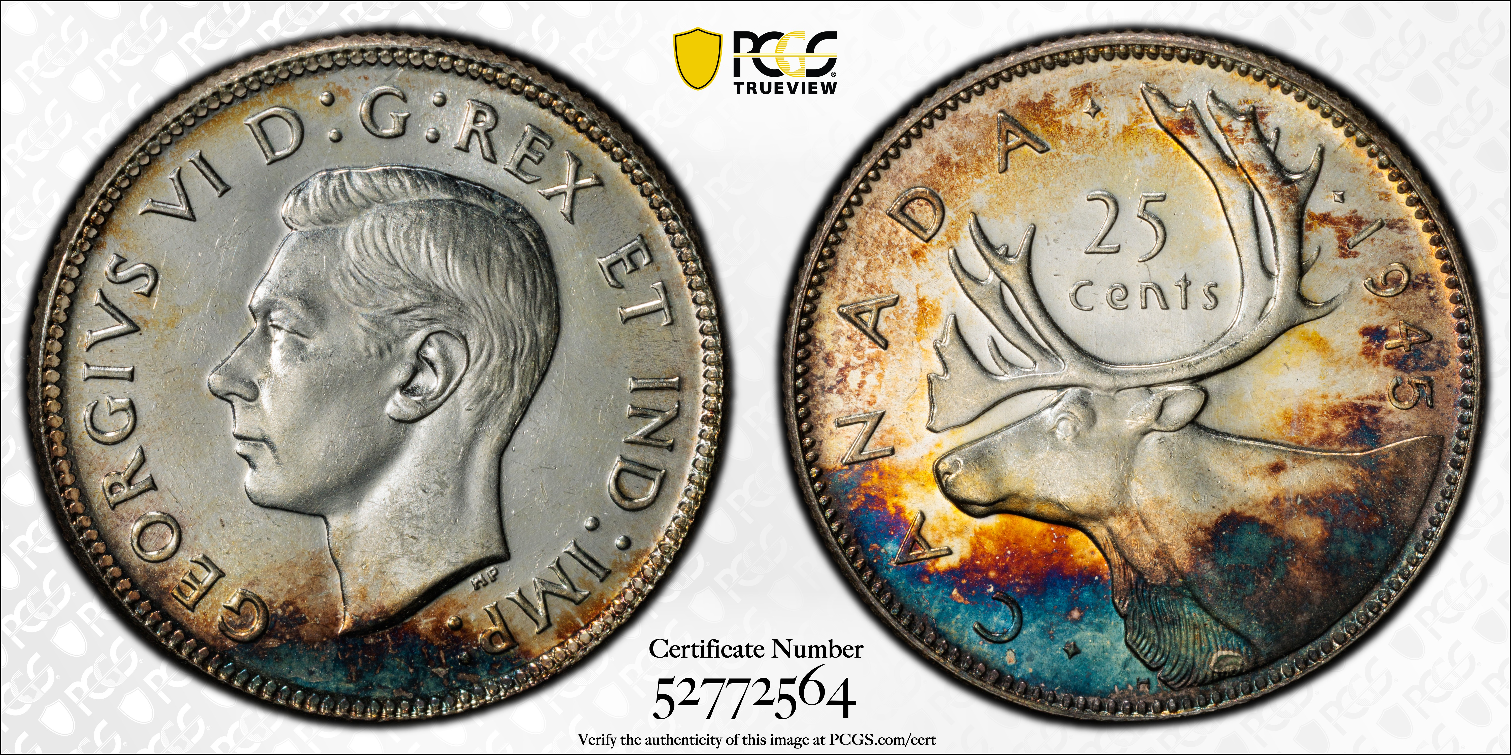 1945 25C MS63 Certification #52772564, PCGS #31858