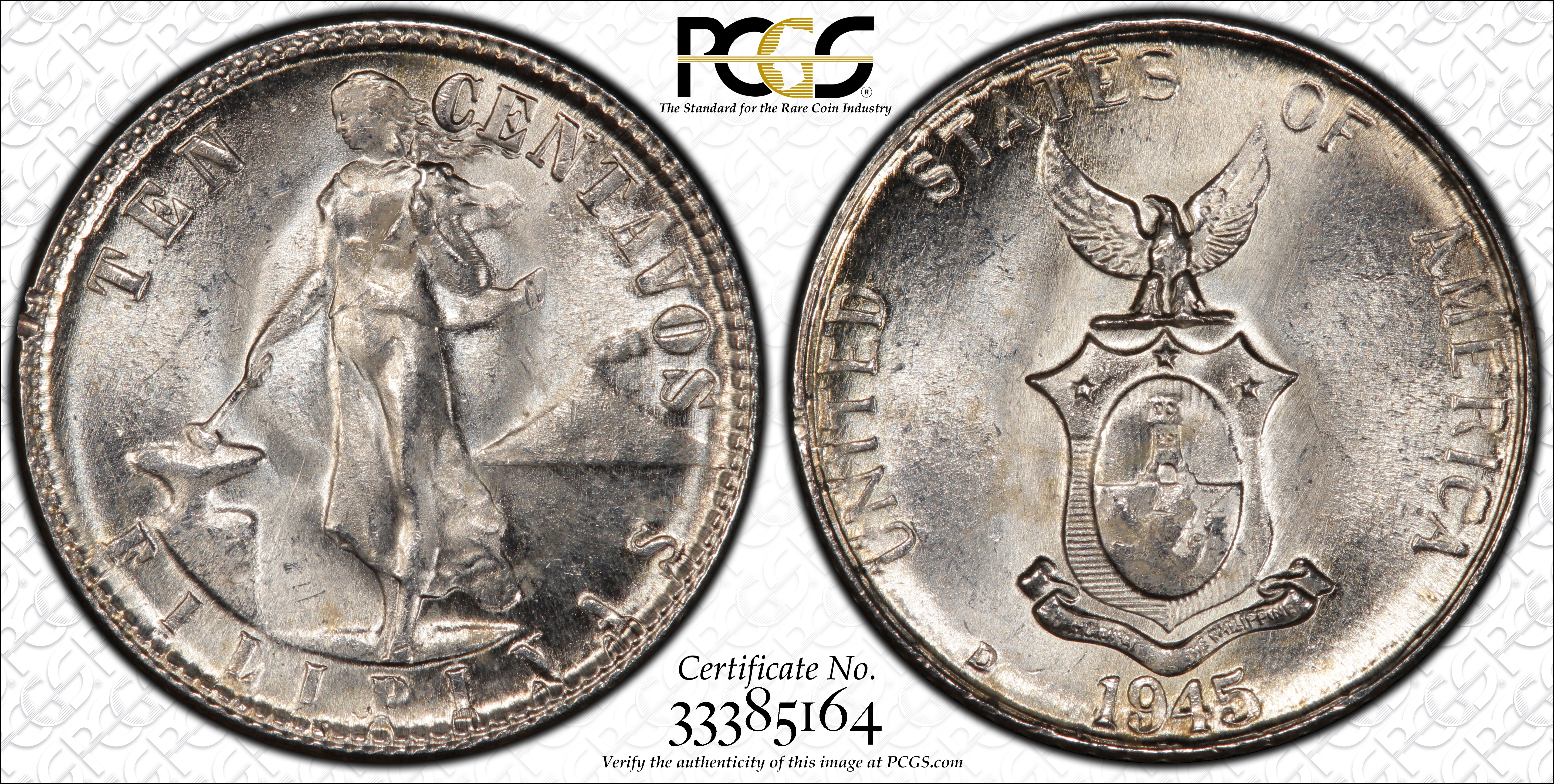 1945-D 10C MS64 Certification #33385164, PCGS #90283