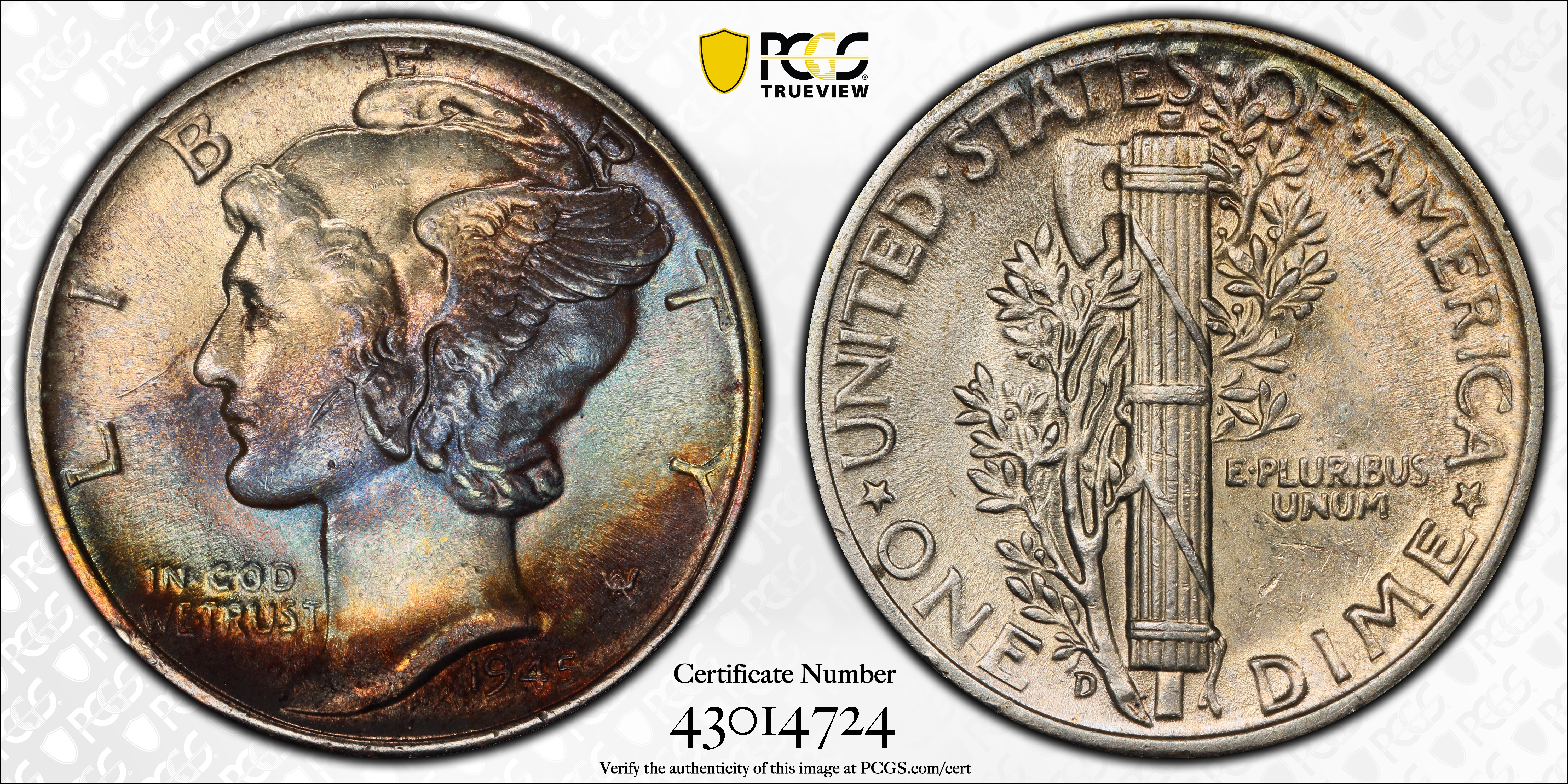 1945-D 10C MS63 Certification #43014724, PCGS #5058