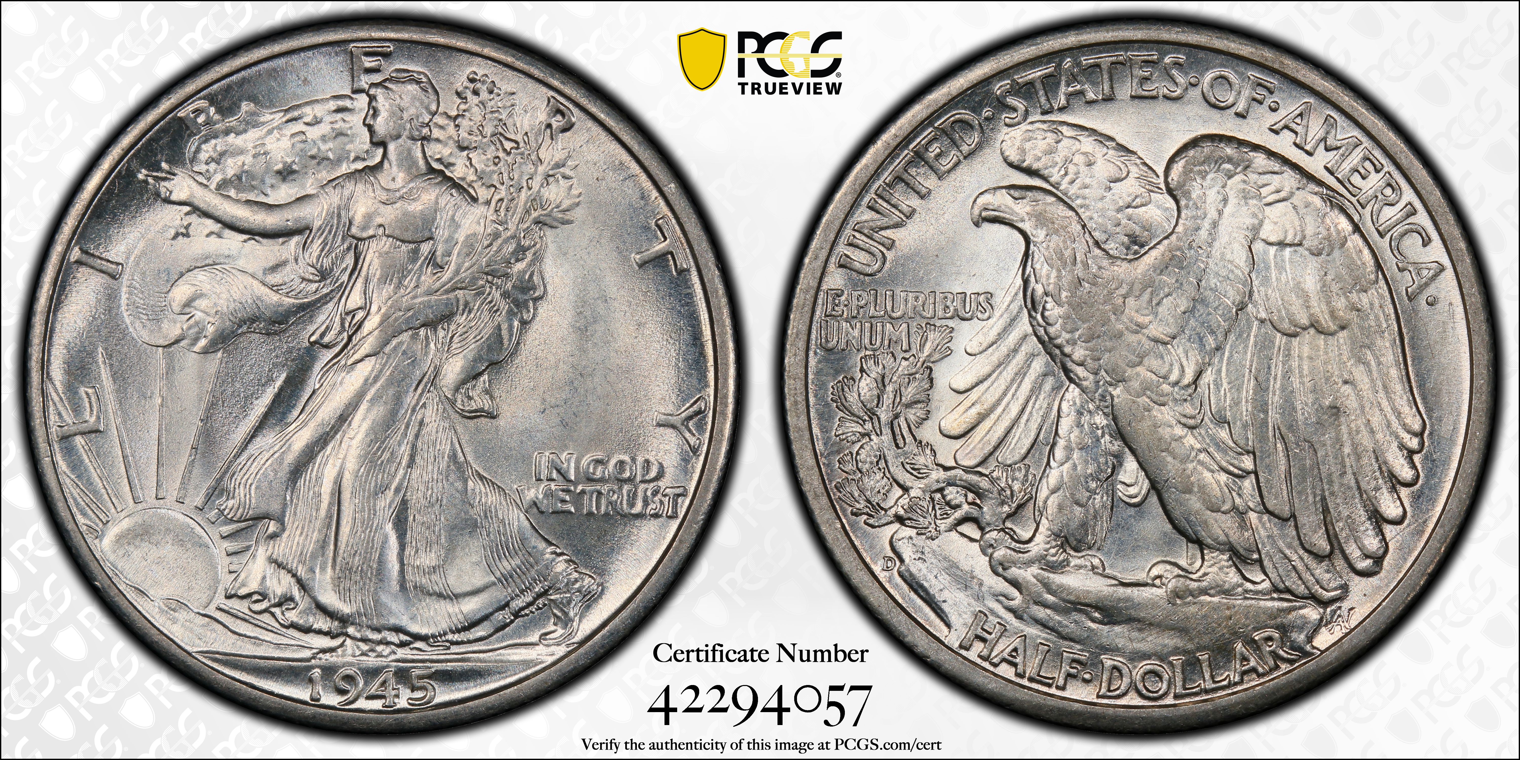 1945-D 50C AU58+ Certification #42294057, PCGS #6625