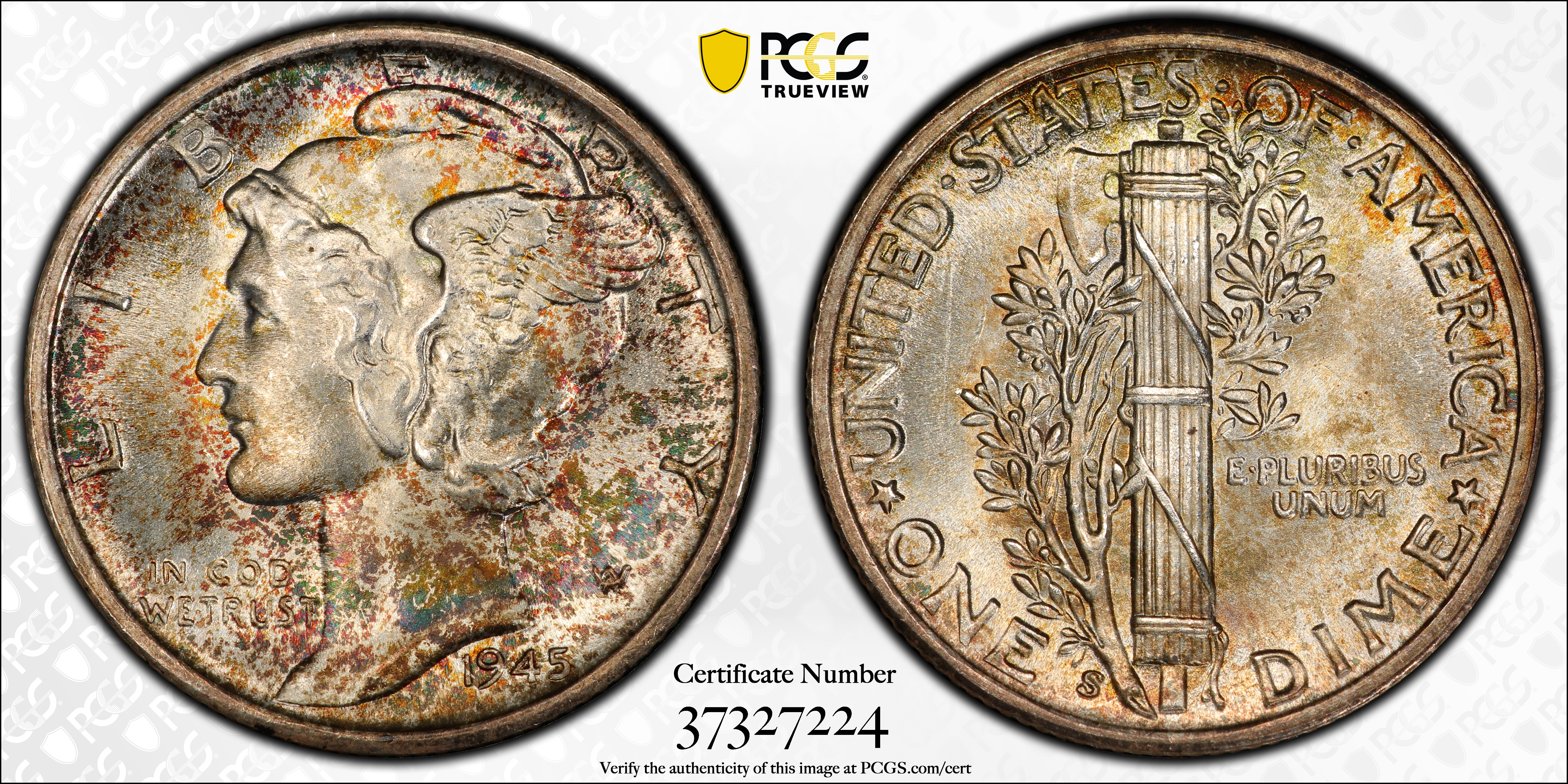 1945-S 10C, FB MS67+ FB Certification #37327224, PCGS #5061