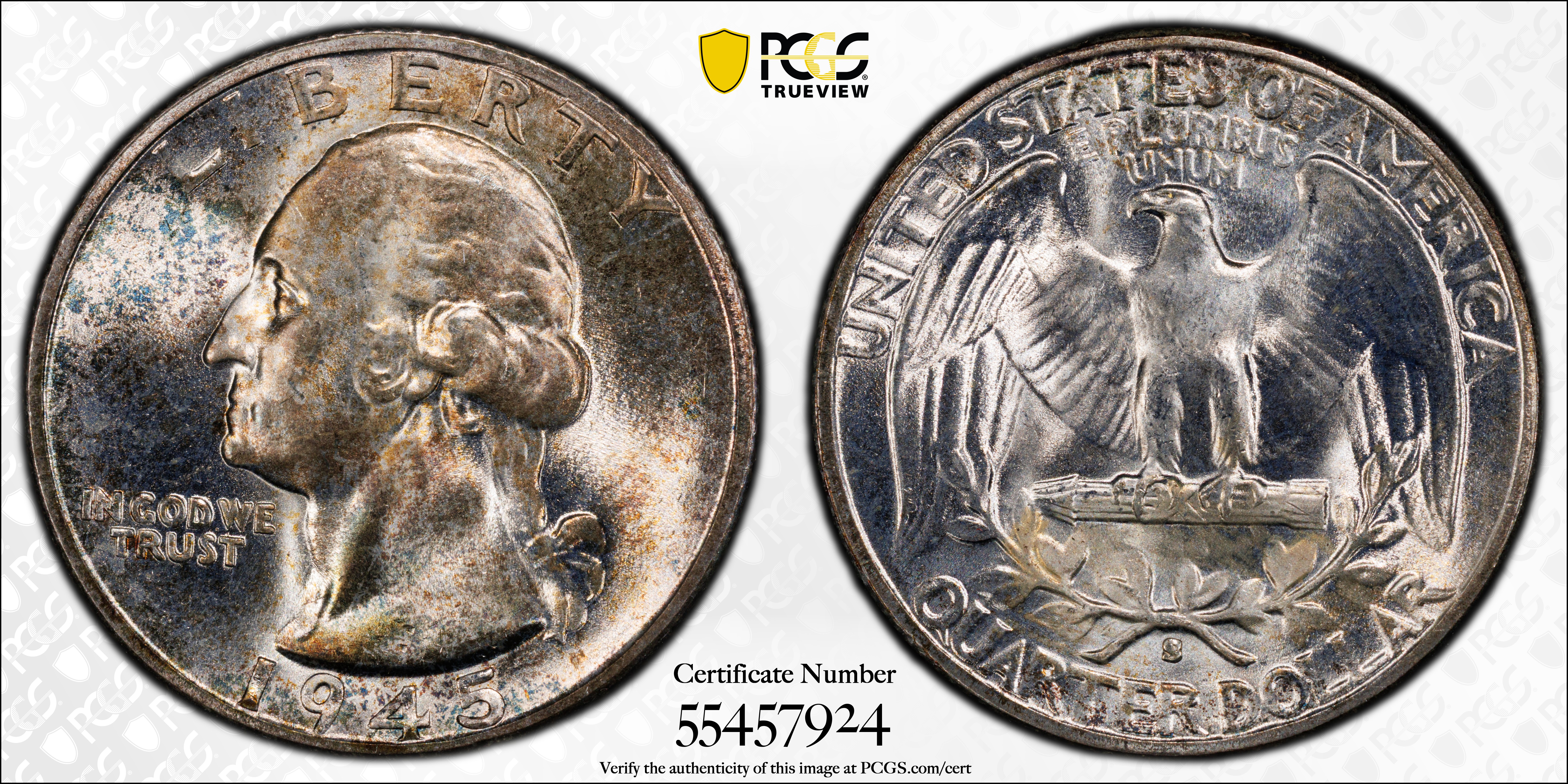 1945-S 25C MS66 Certification #55457924, PCGS #5829