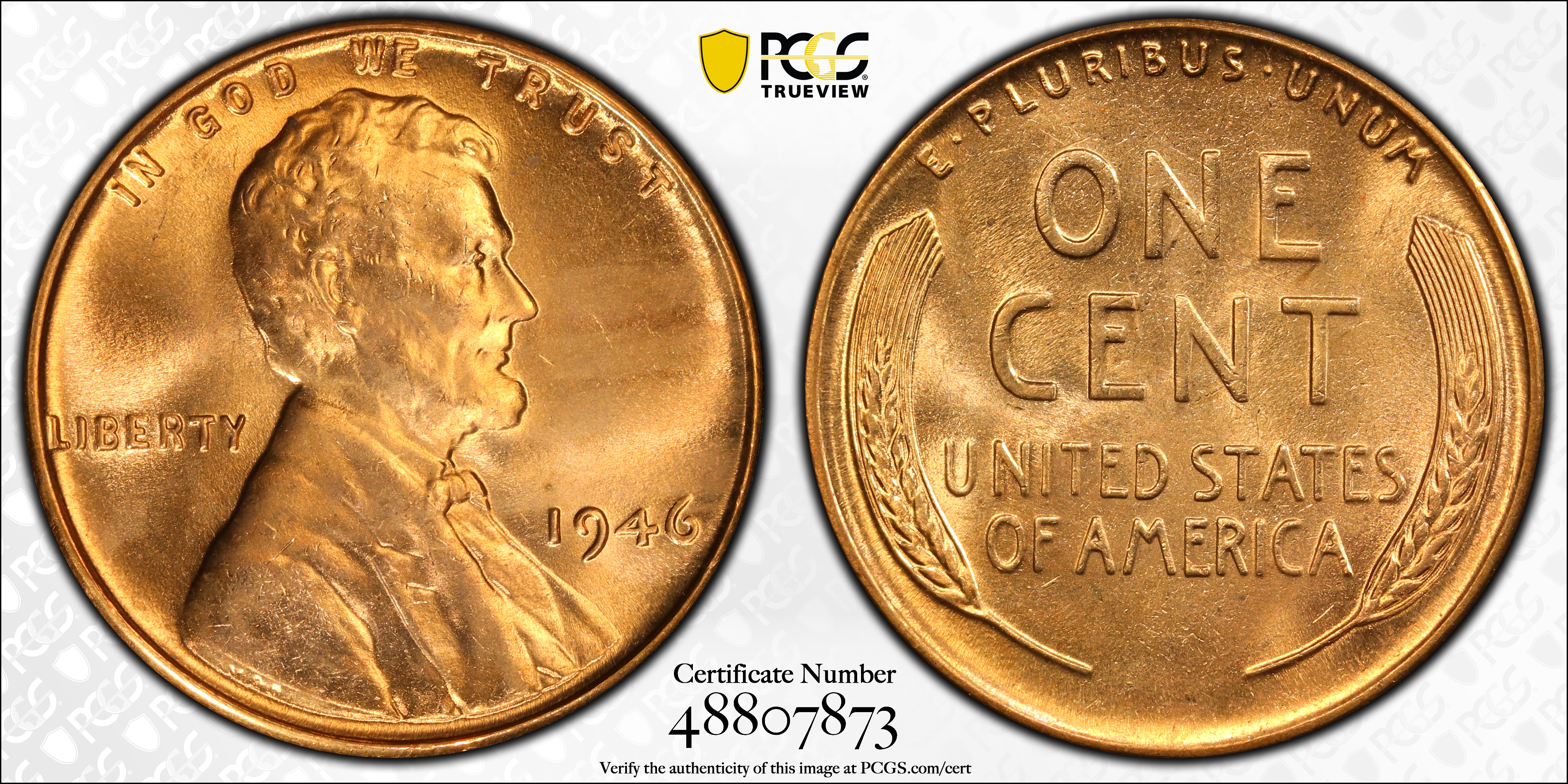 1946 1C, RD MS64RD Certification #48807873, PCGS #2743