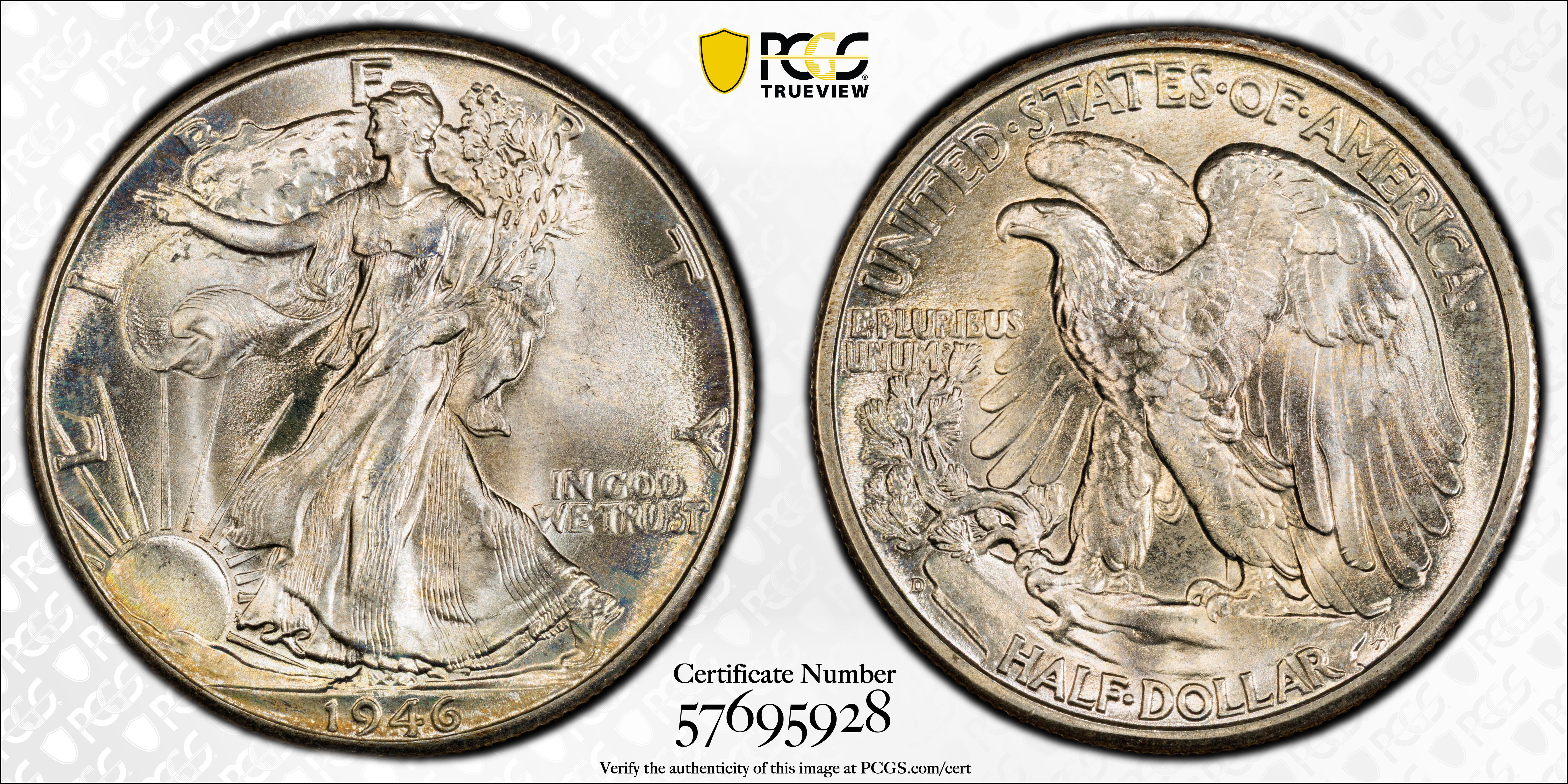 1946-D 50C MS68 Certification #57695928, PCGS #6628