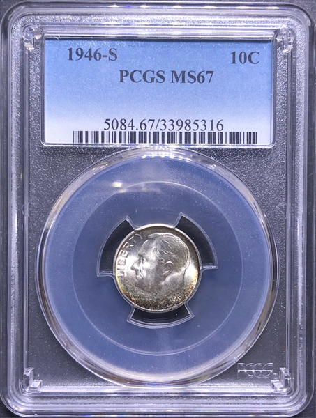 1946-S 10C MS67 Certification #33985316, PCGS #5084