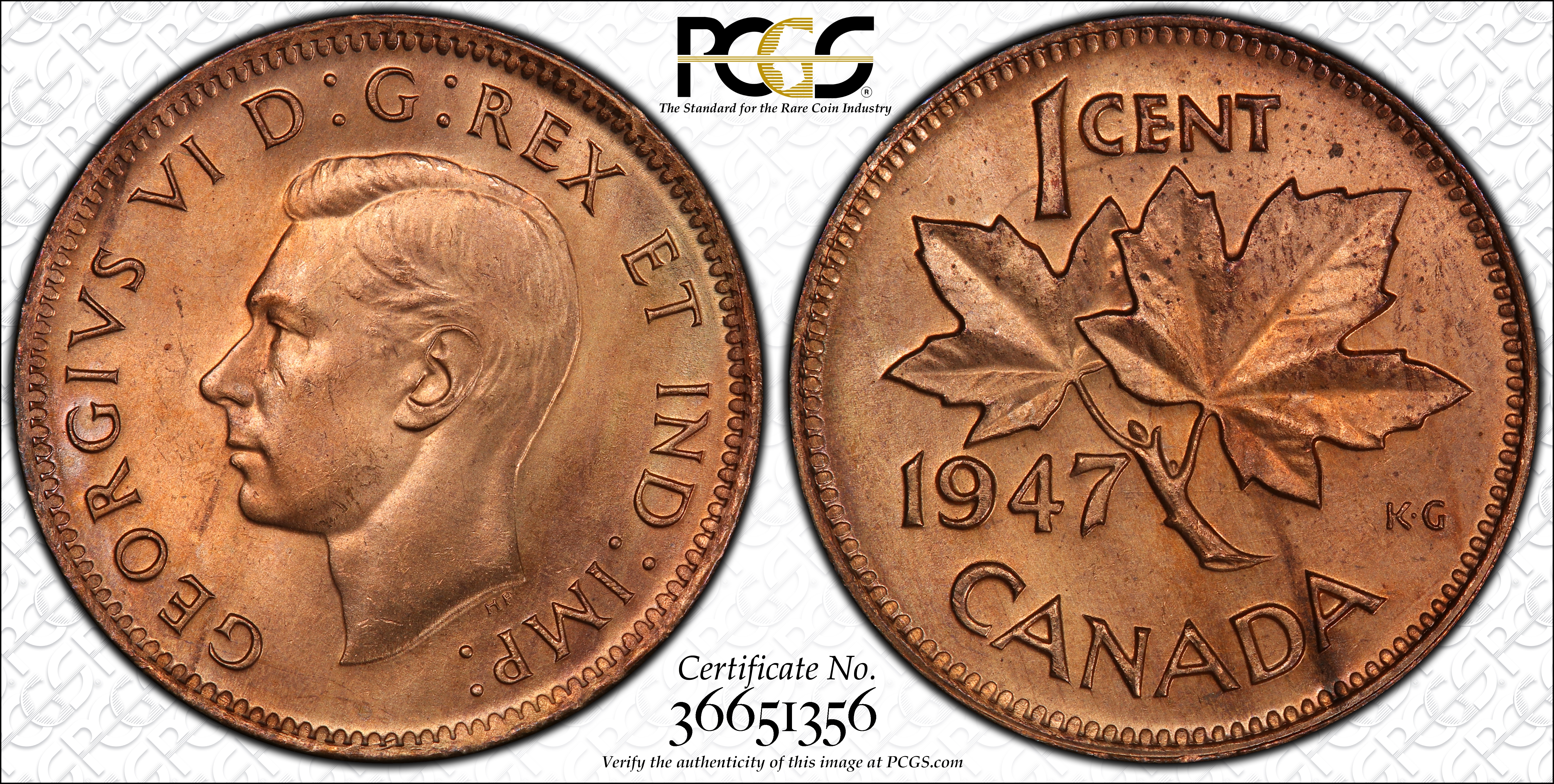 1947 1C, RD MS65RD Certification #36651356, PCGS #30374