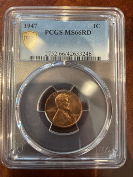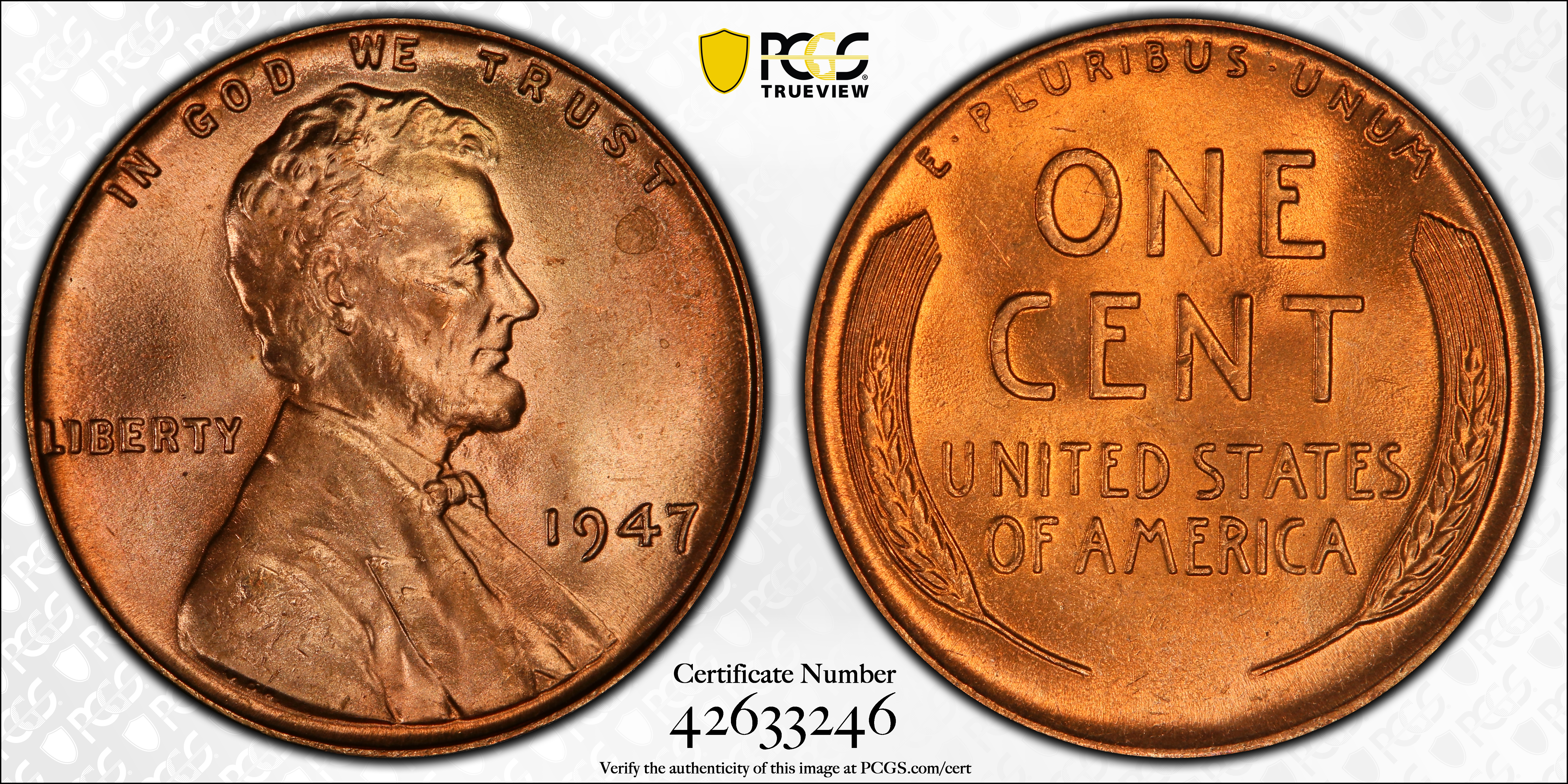 1947 1C, RD MS66RD Certification #42633246, PCGS #2752