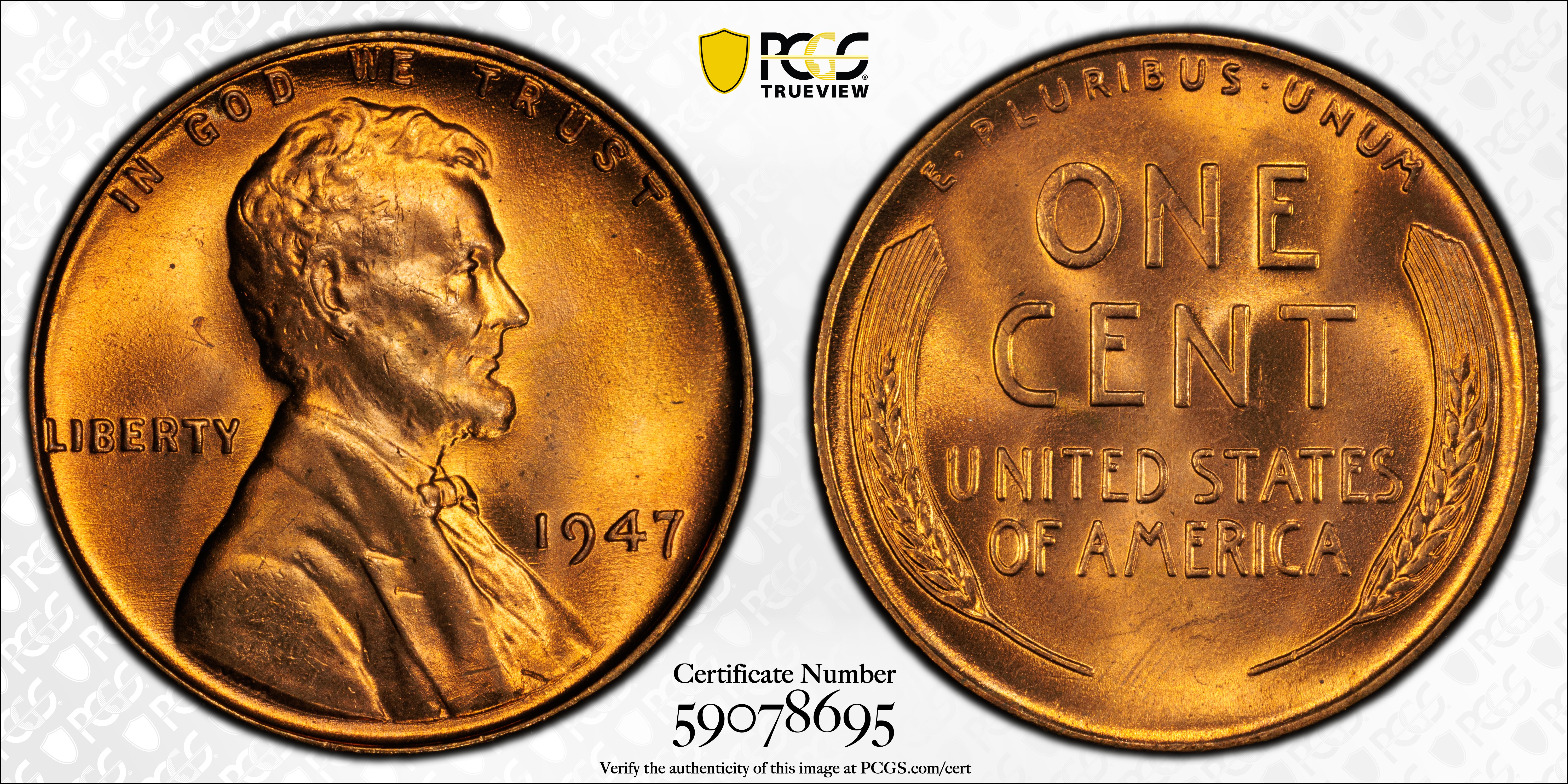 1947 1C, RD MS66RD Certification #59078695, PCGS #2752