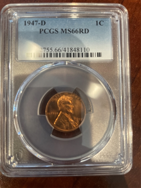 1947-D 1C, RD MS66RD Certification #41848110, PCGS #2755