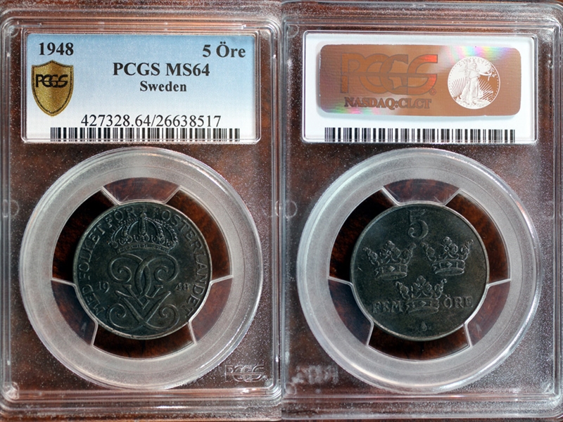 1948 5 Öre MS64 Certification #26638517, PCGS #427328