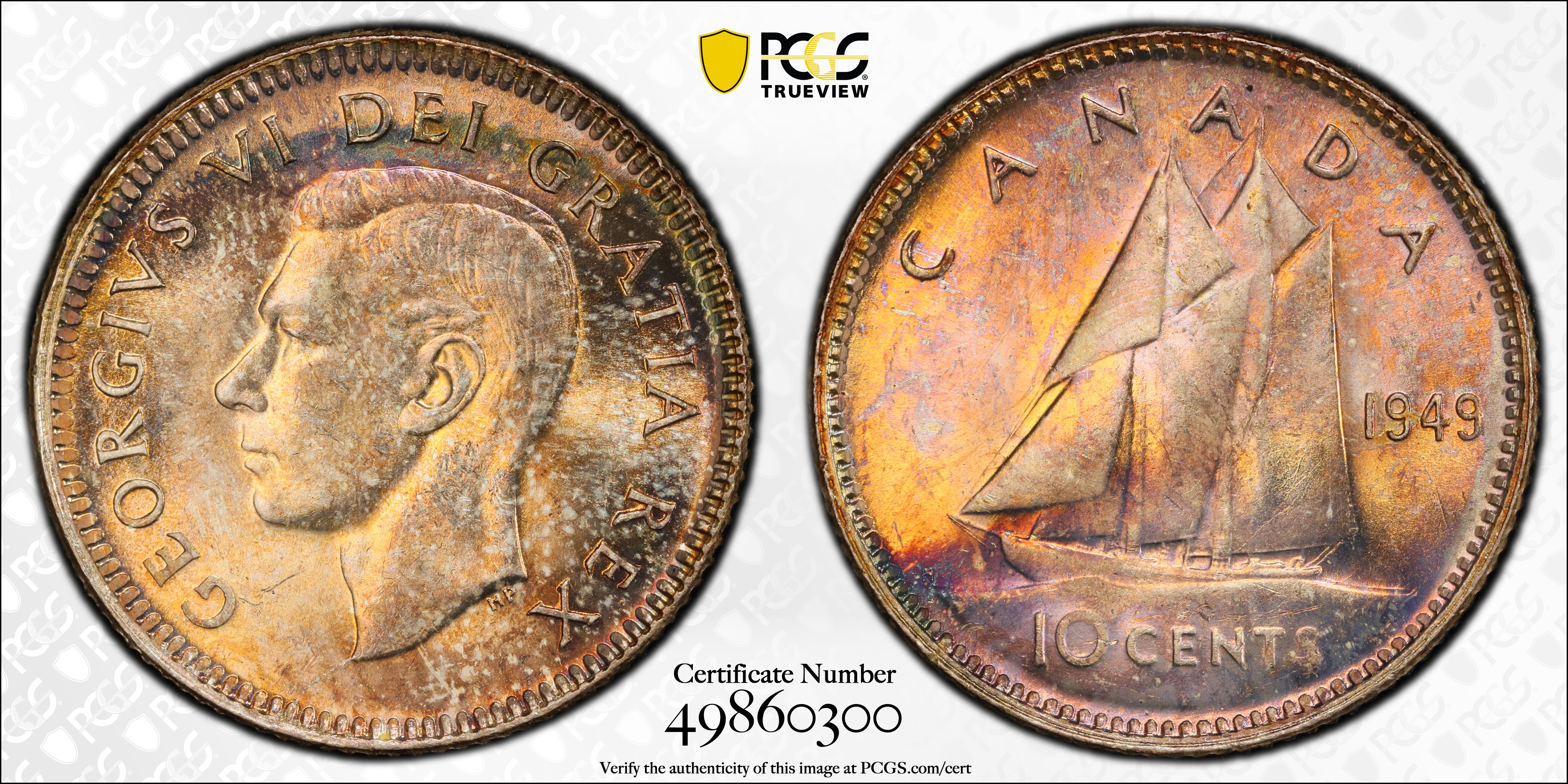 1949 10C MS66 Certification #49860300, PCGS #31502