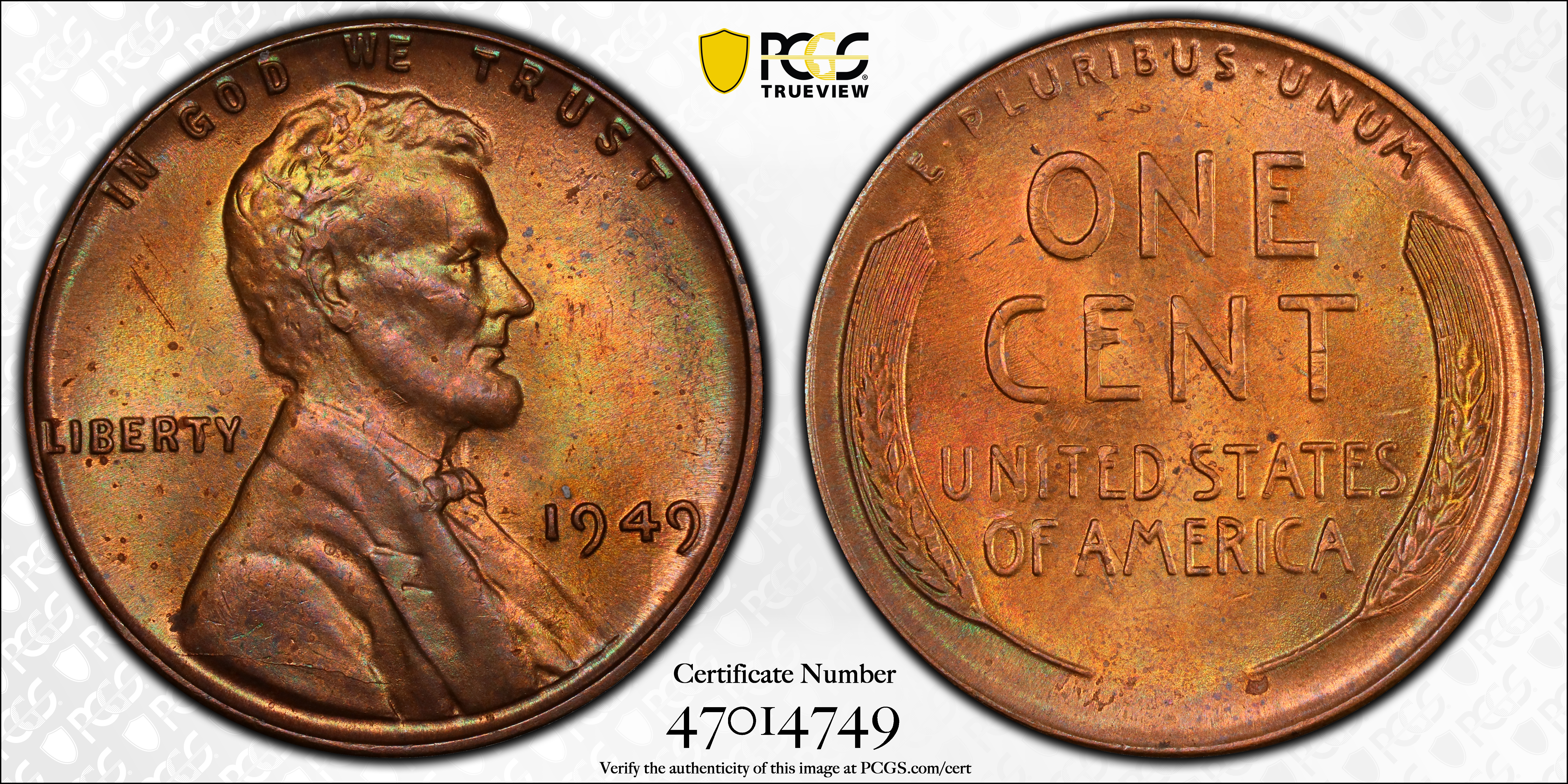 1949 1C, BN MS64BN Certification #47014749, PCGS #2768