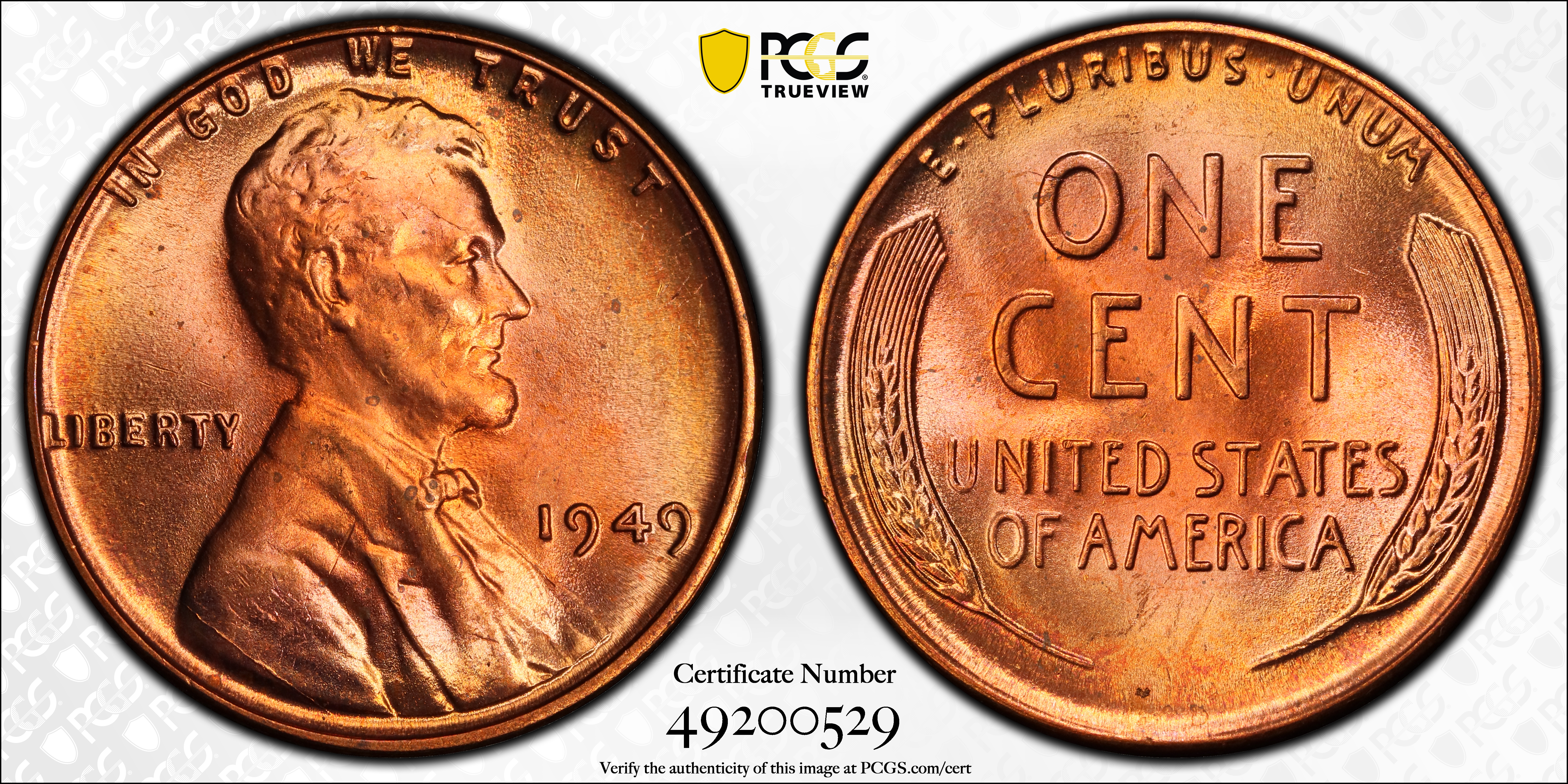 1949 1C, RD MS66RD Certification #49200529, PCGS #2770