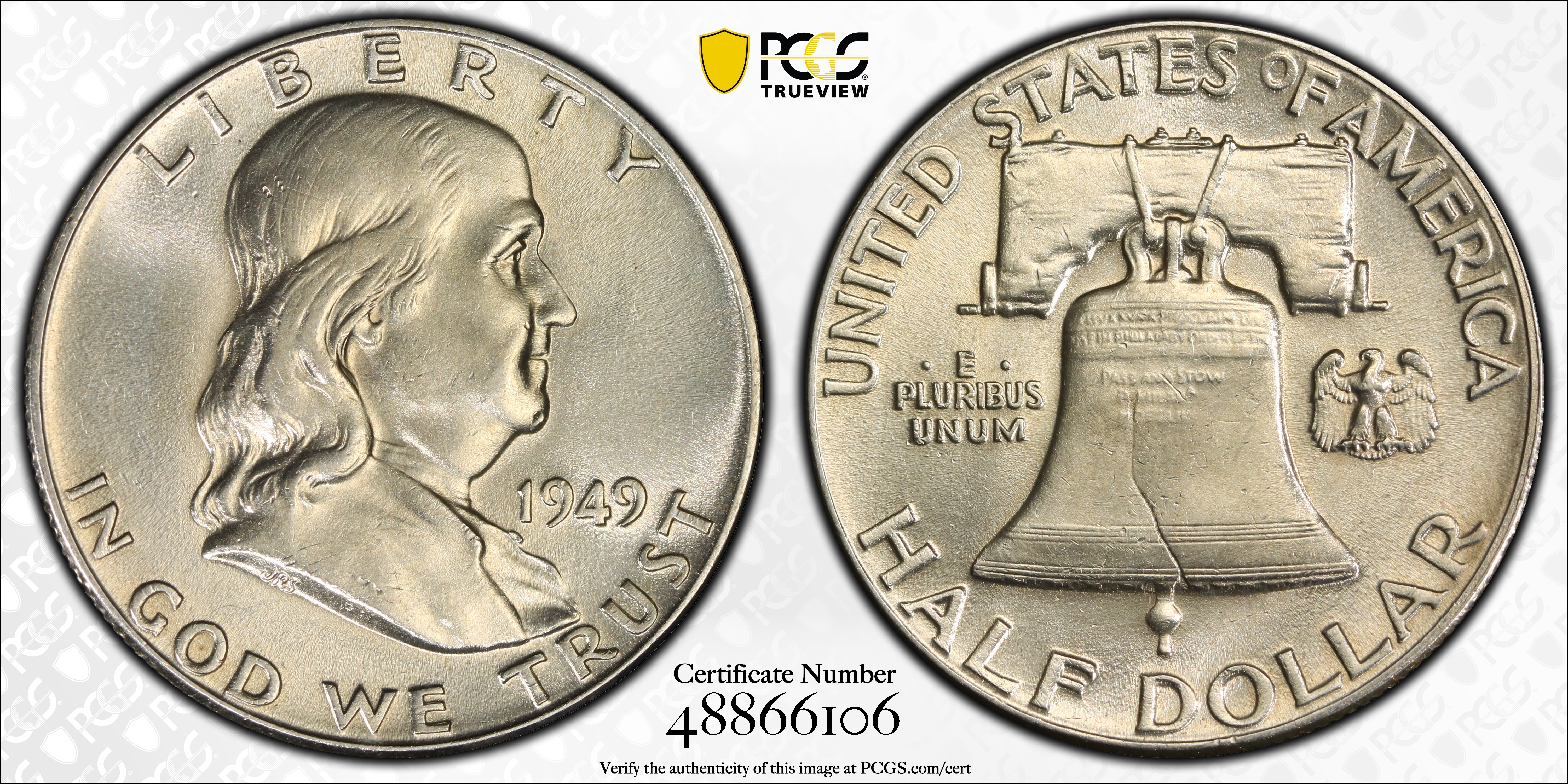 1949 50C, FBL MS62FBL Certification #48866106, PCGS #86653