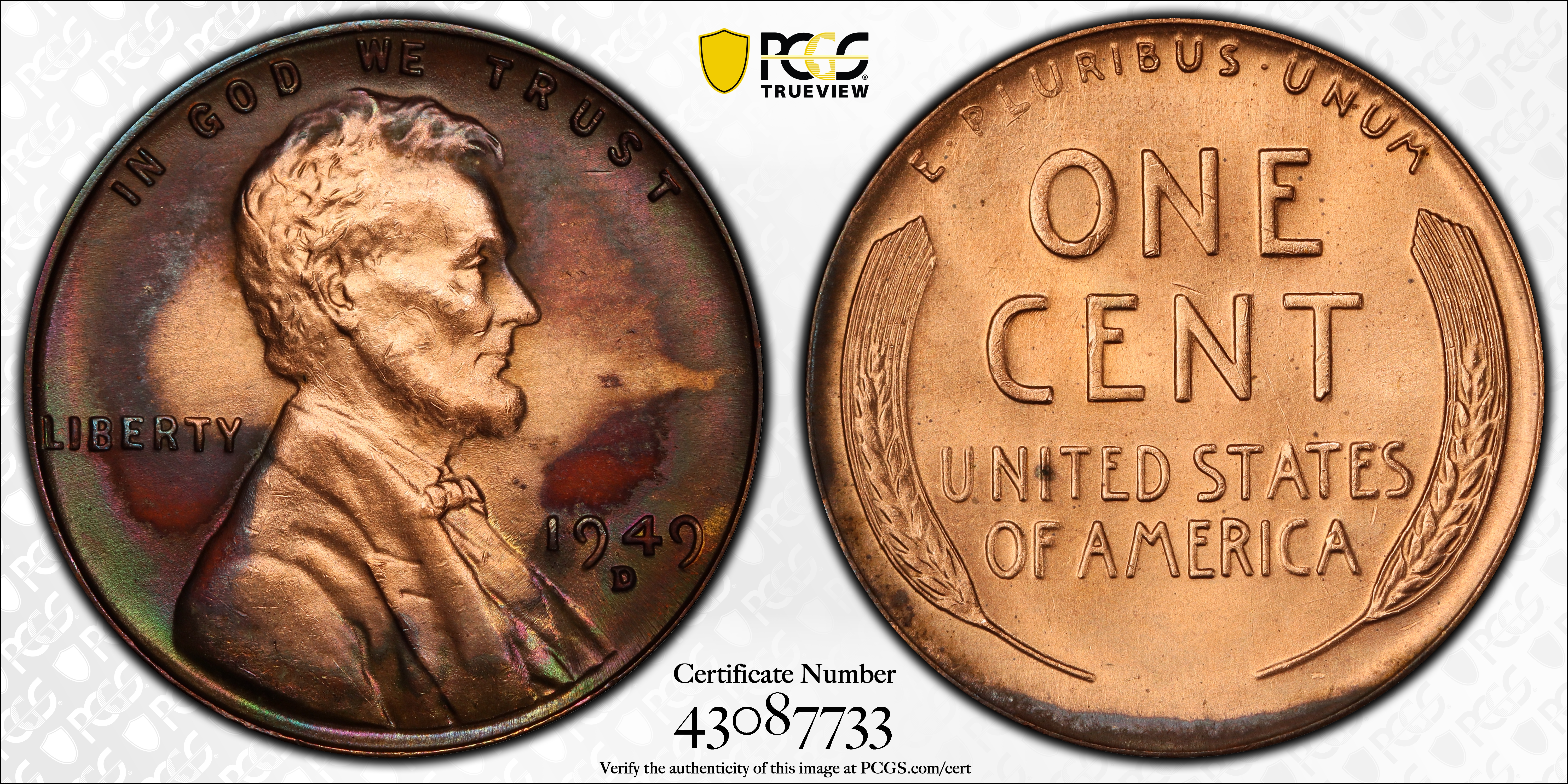 1949-D 1C, BN N1BN Certification #43087733, PCGS #2771