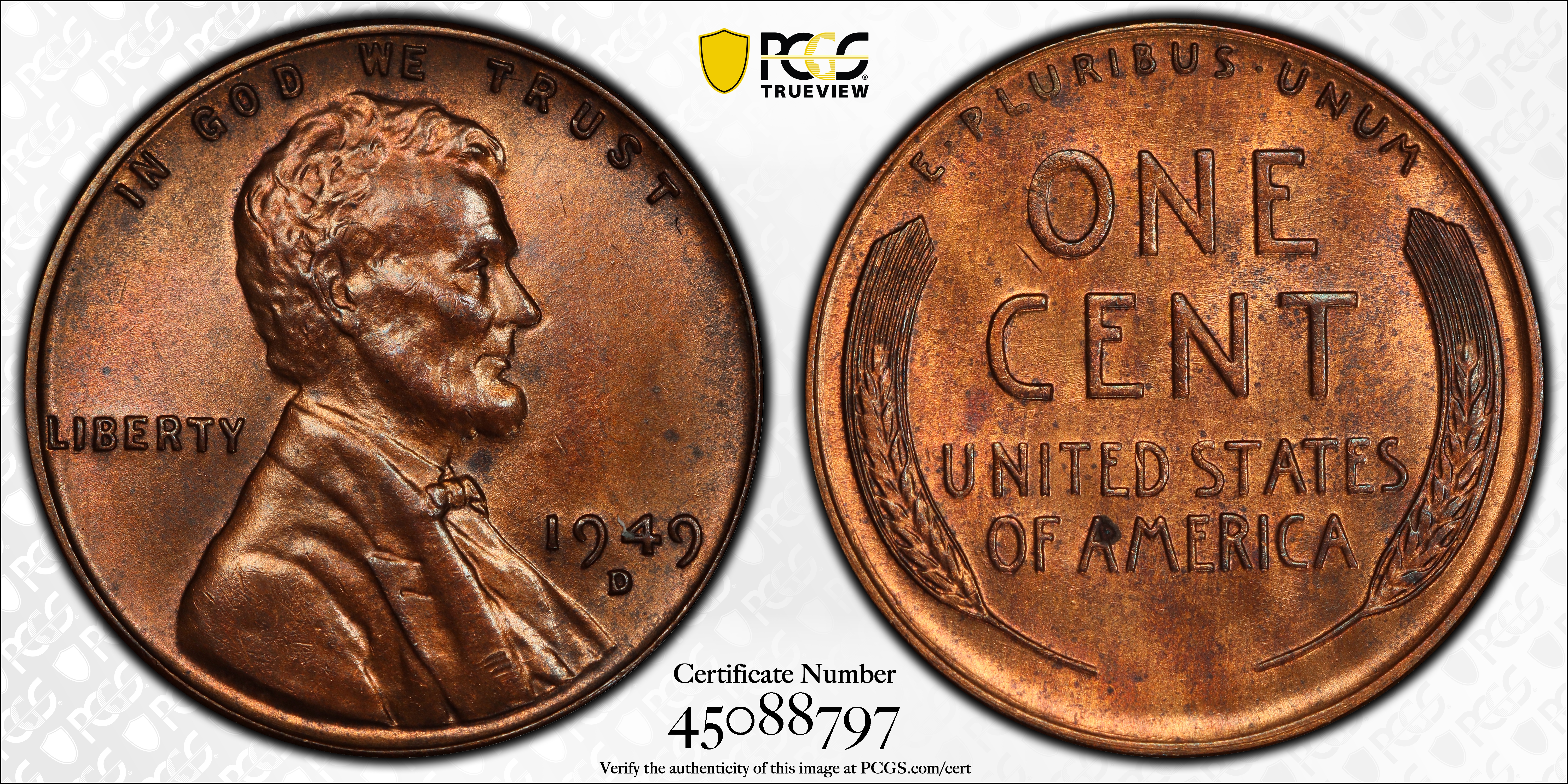 1949-D 1C, RB MS64RB Certification #45088797, PCGS #2772