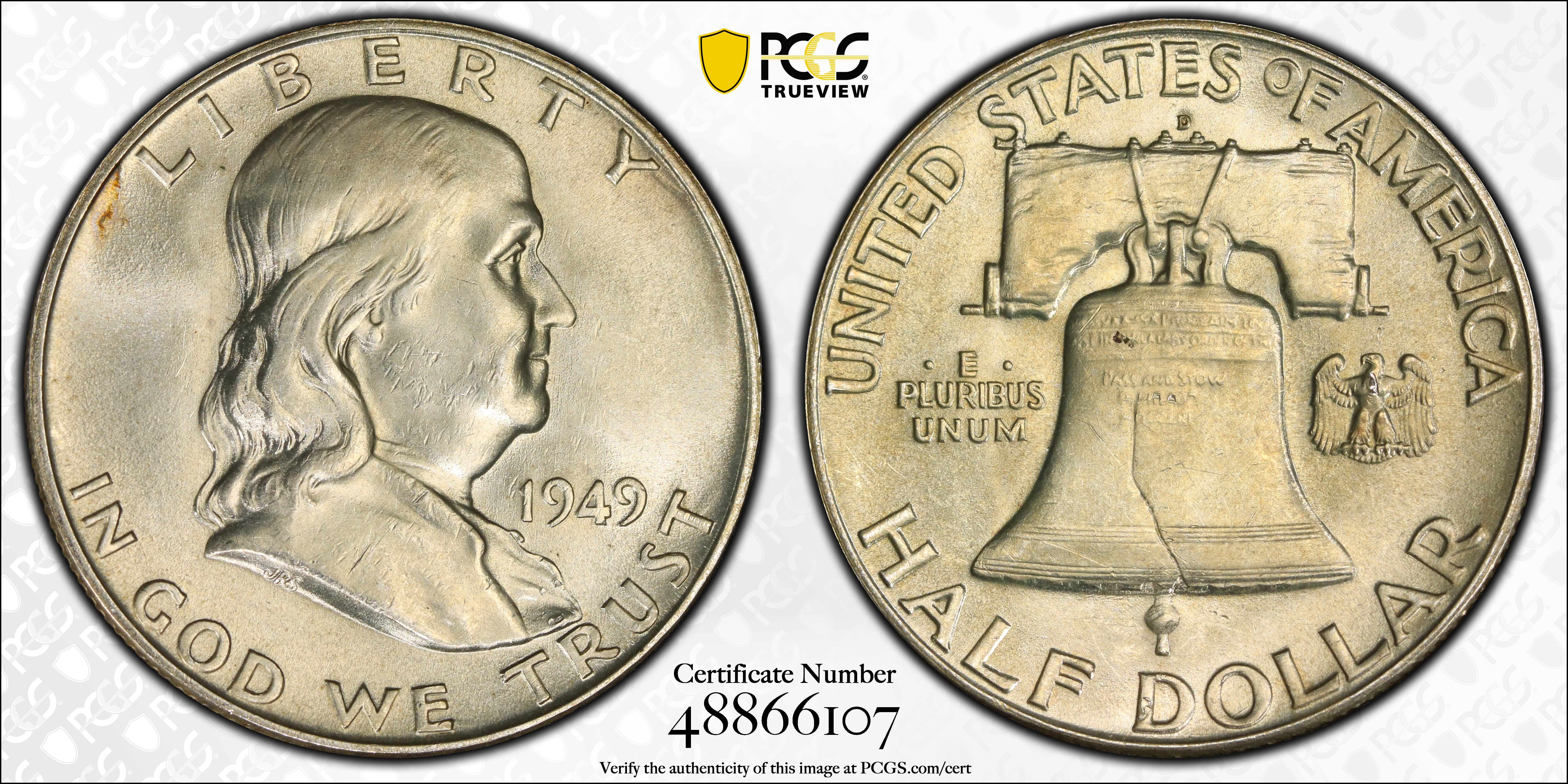 1949-D 50C, FBL MS63FBL Certification #48866107, PCGS #86654
