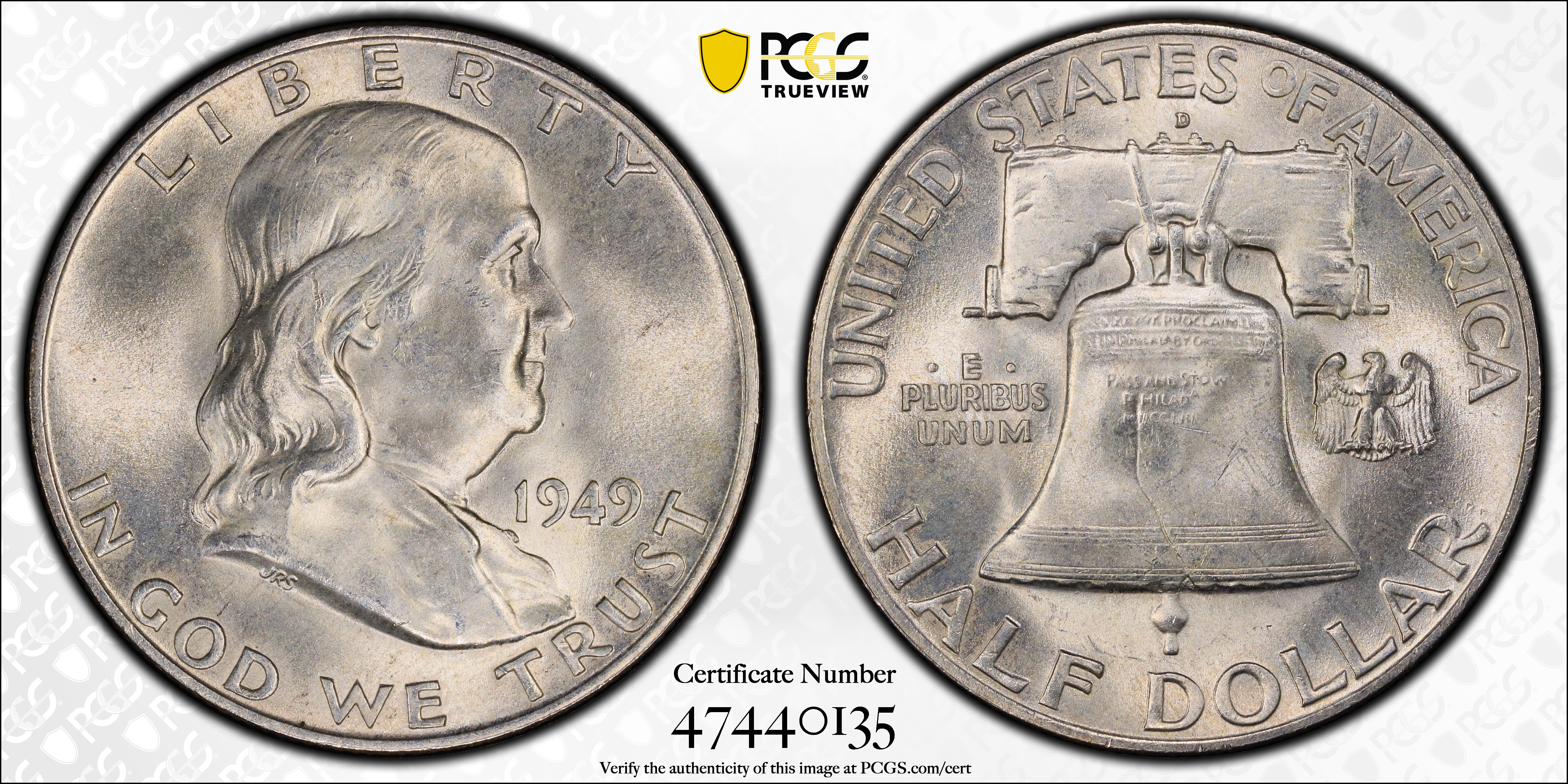 1949-D 50C, FBL MS65FBL Certification #47440135, PCGS #86654