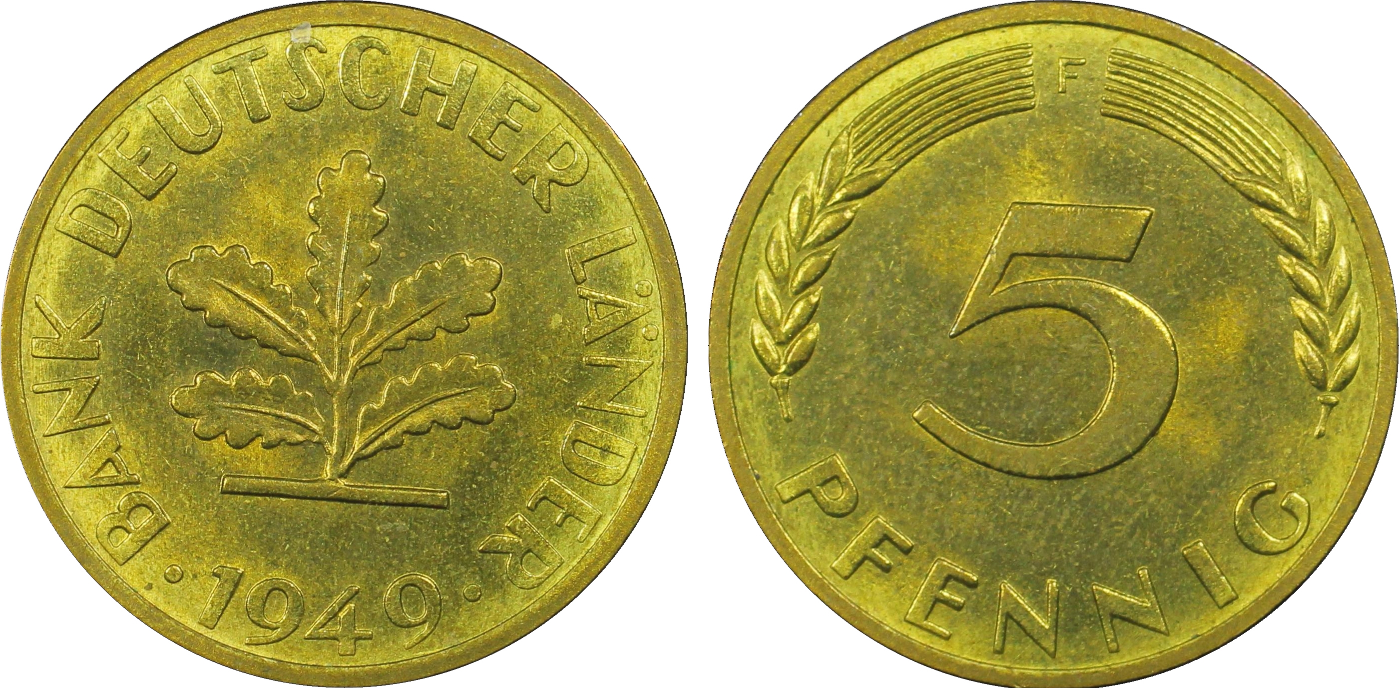 1949-F 5 Pfg J-377 MS65 Certification #24041423, PCGS #832616