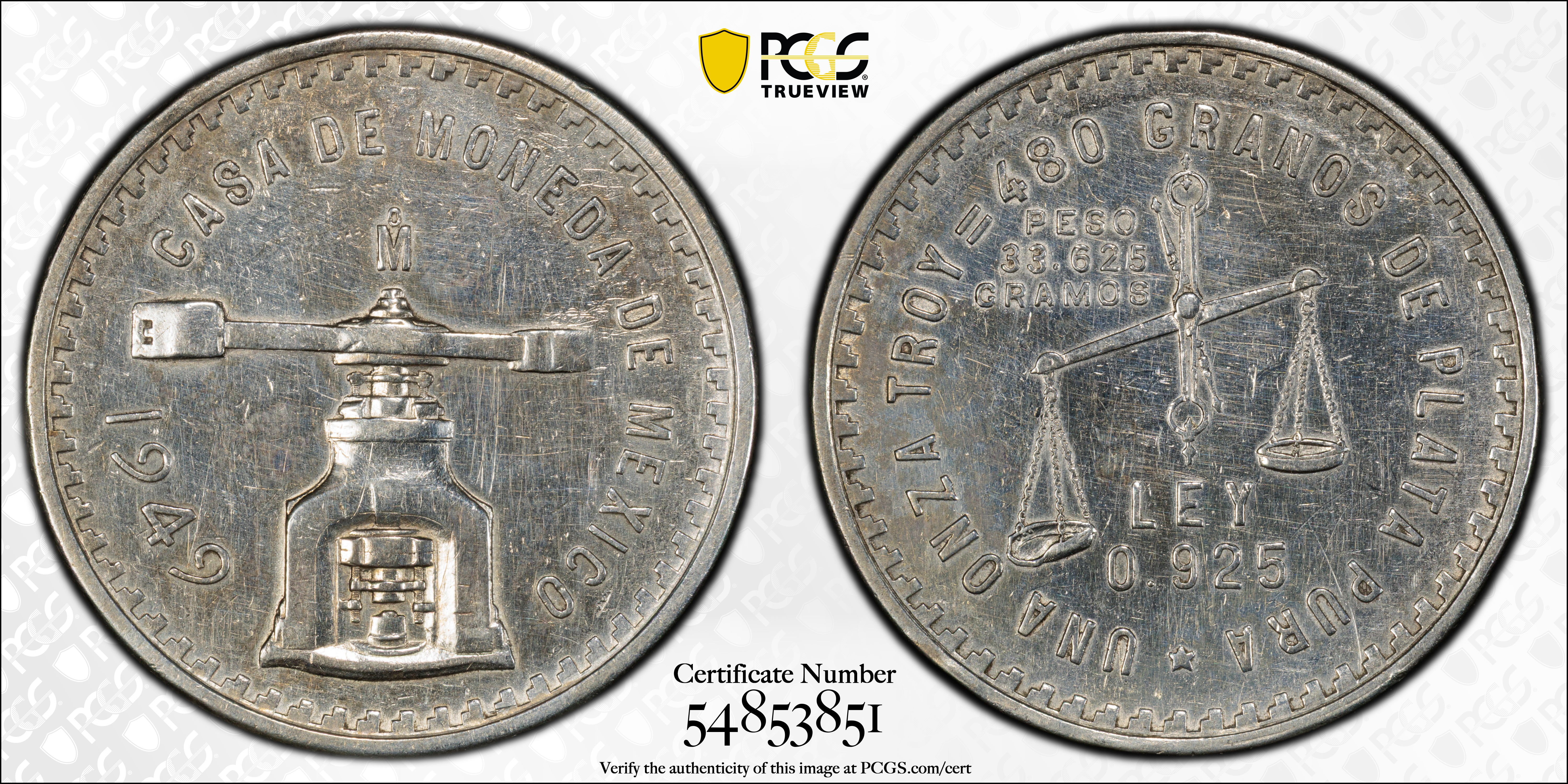 1949-Mo Onza KM-M49a Ag N1 Certification #54853851, PCGS #526421