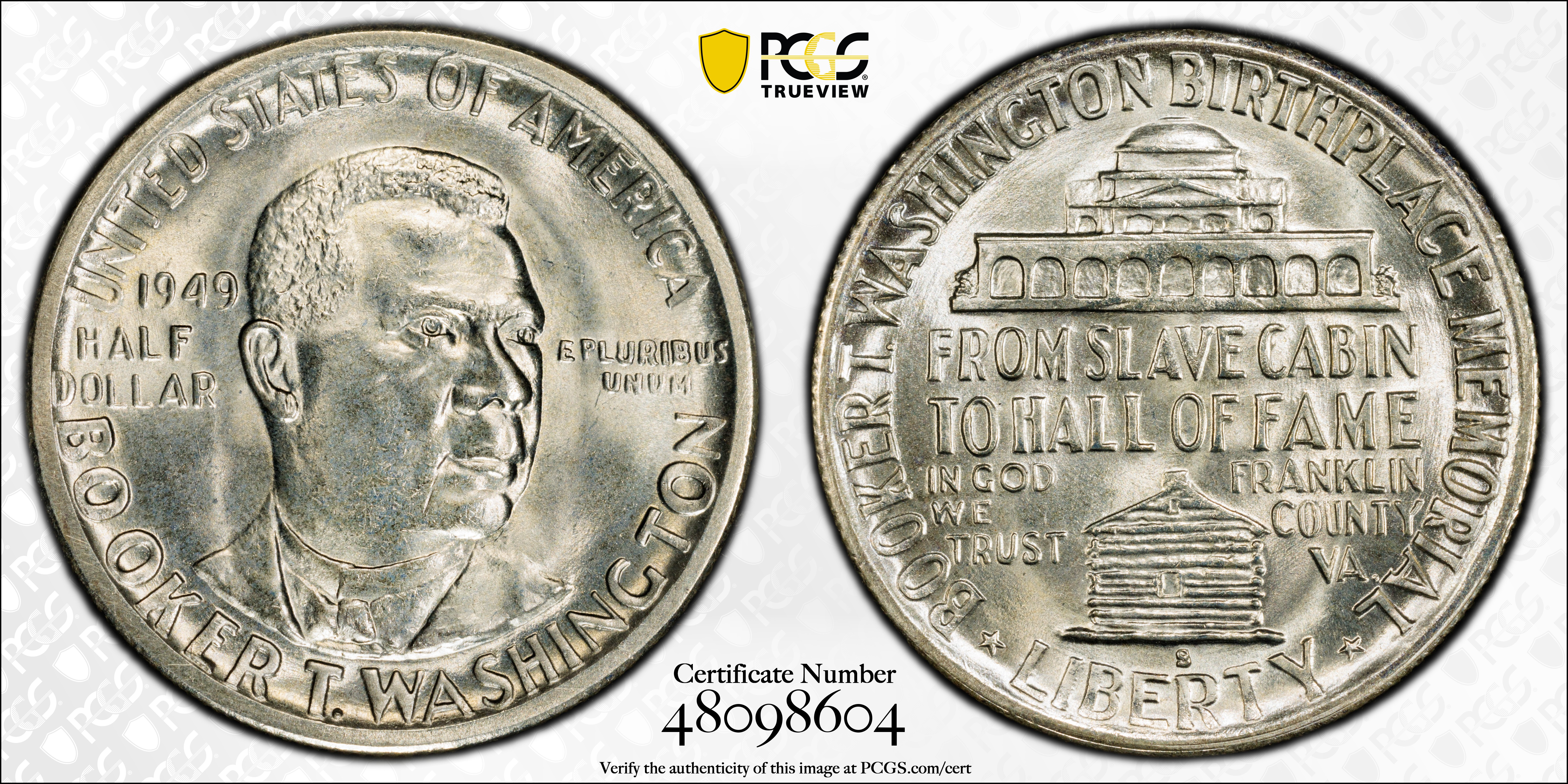 1949-S 50C Booker T. Washington MS66+ Certification #48098604, PCGS #9418